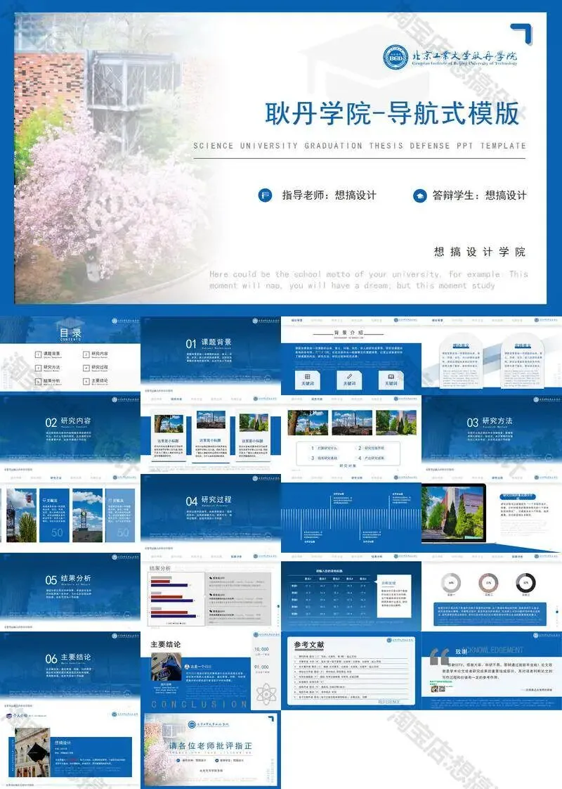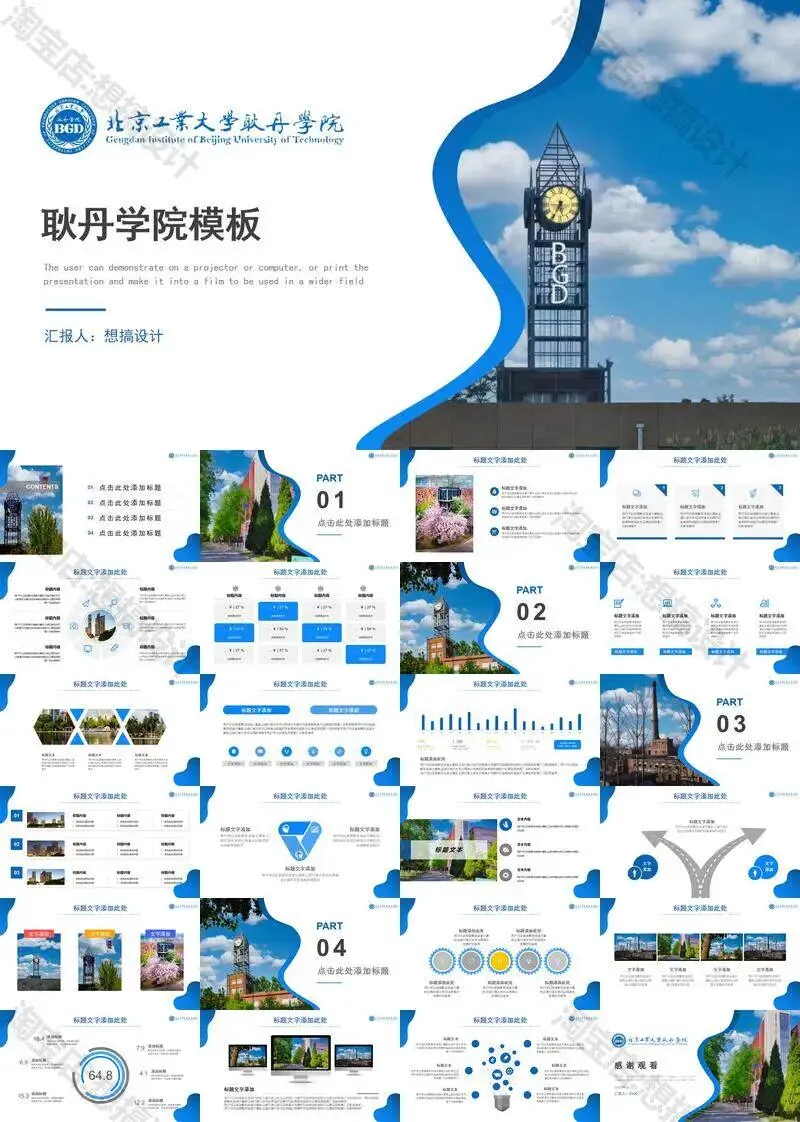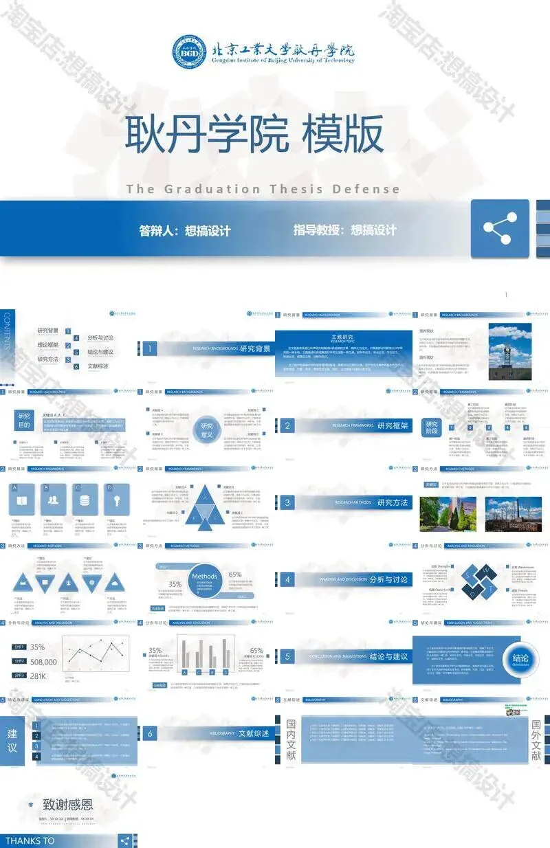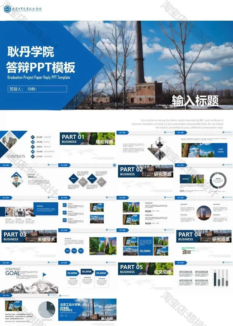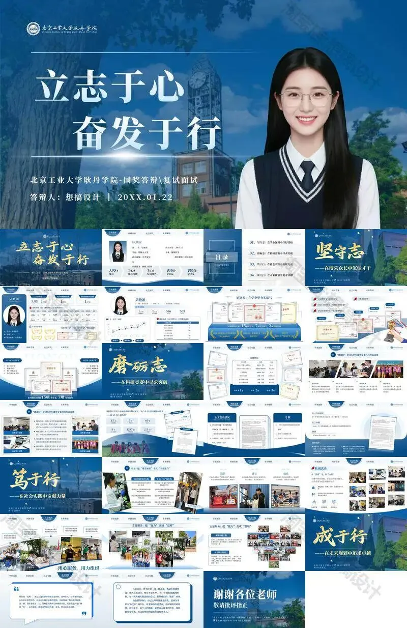 >北京工业大学耿丹学院毕业答辩PPT模板汇报幻灯片课件总结