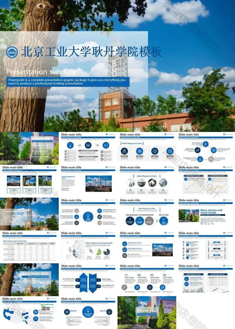 北京工业大学耿丹学院毕业答辩PPT模板汇报幻灯片课件总结