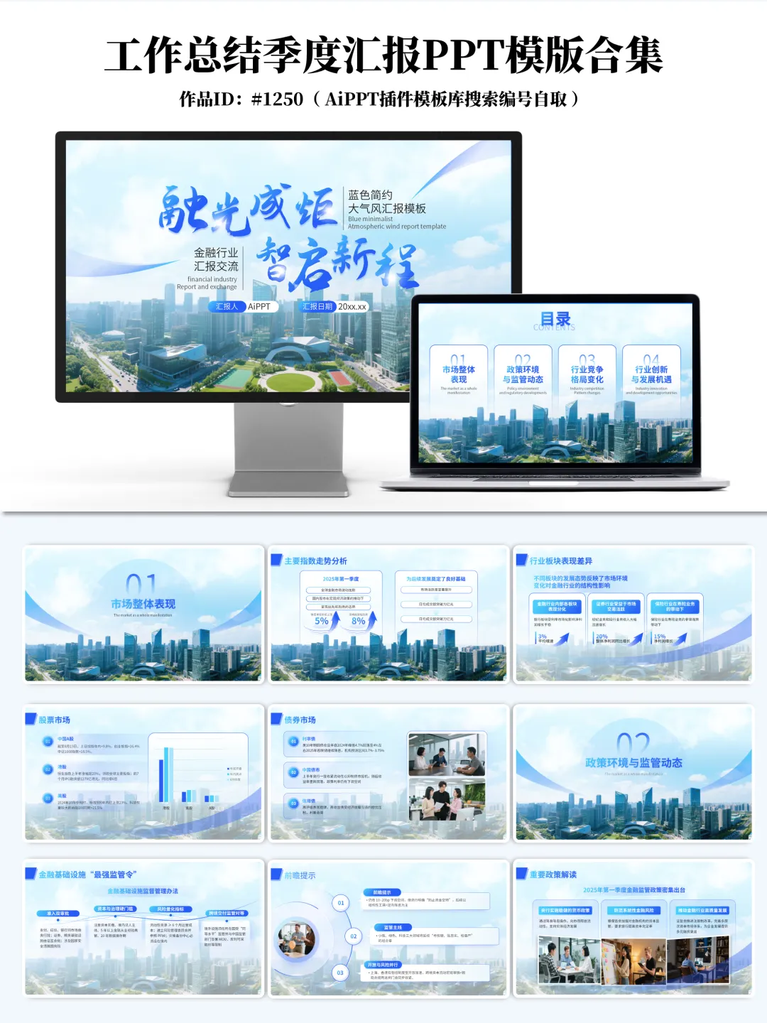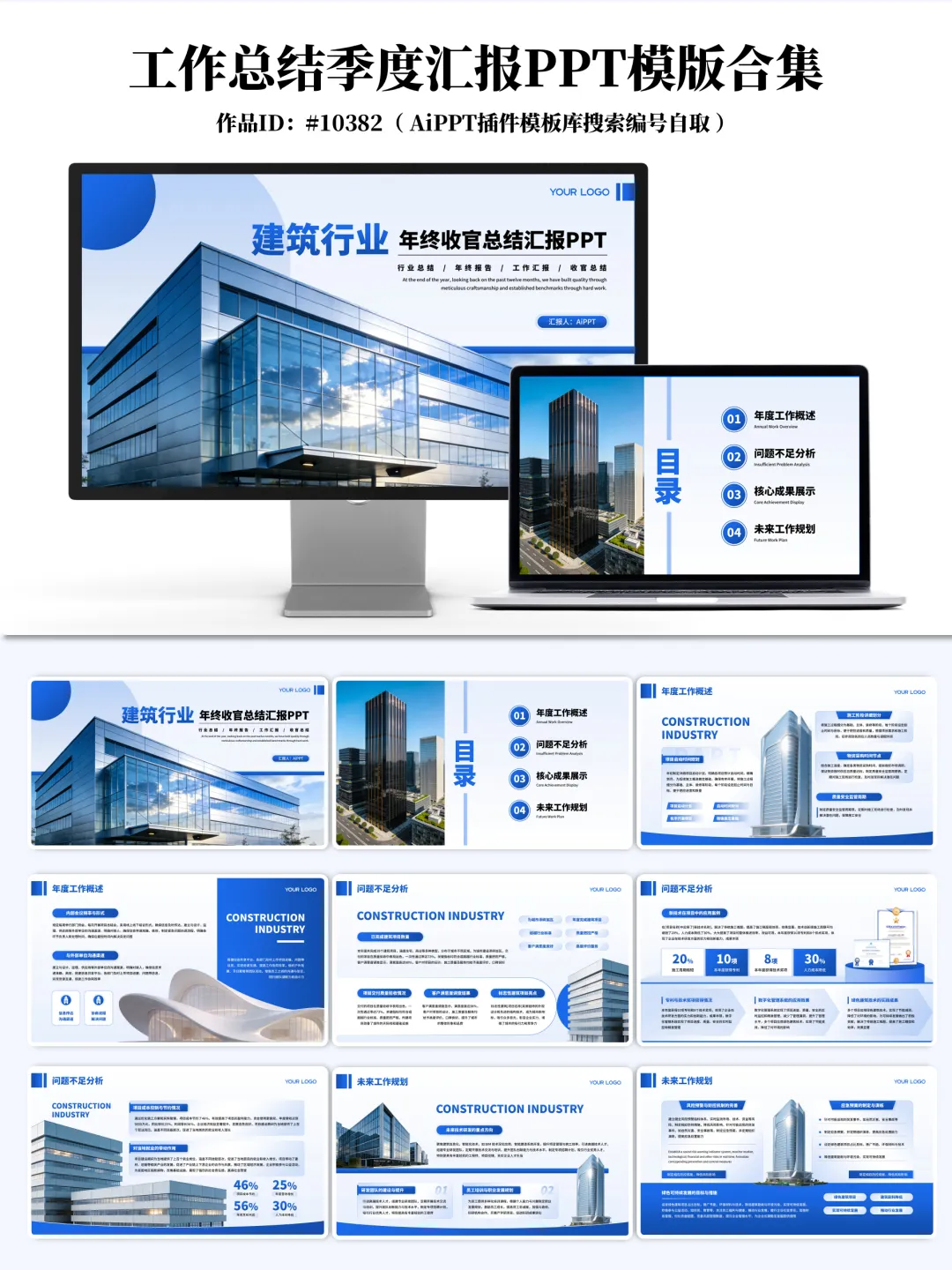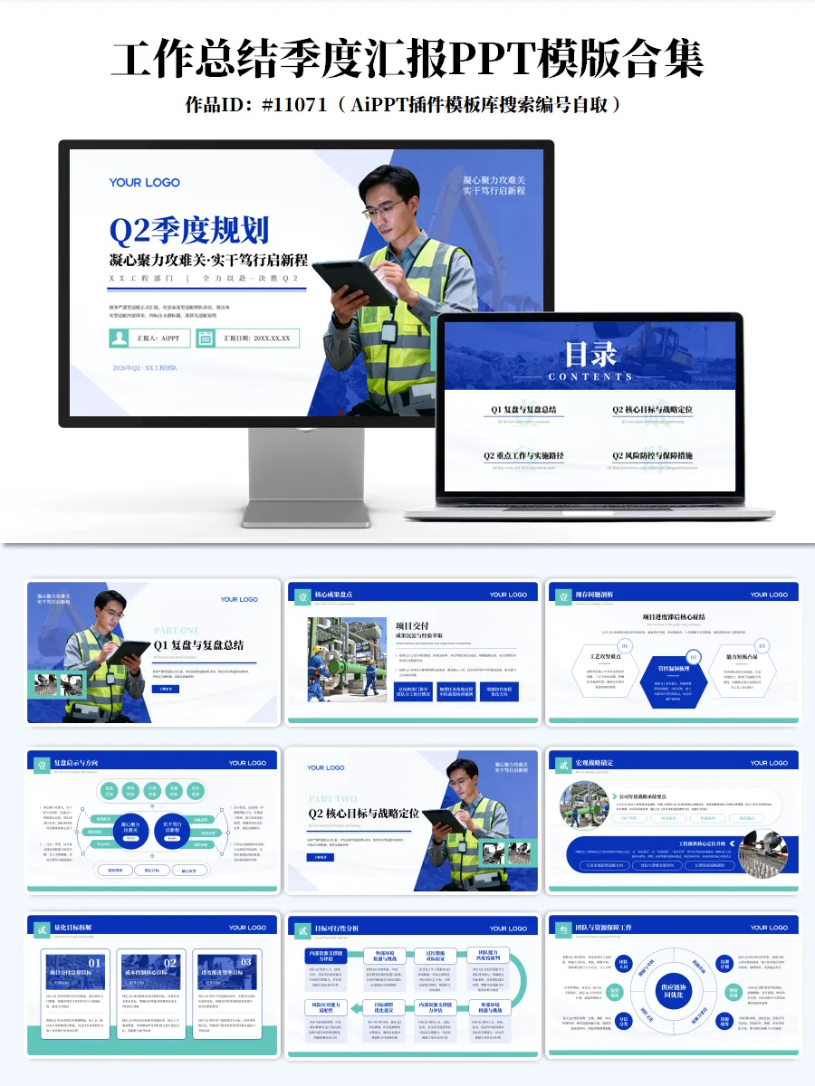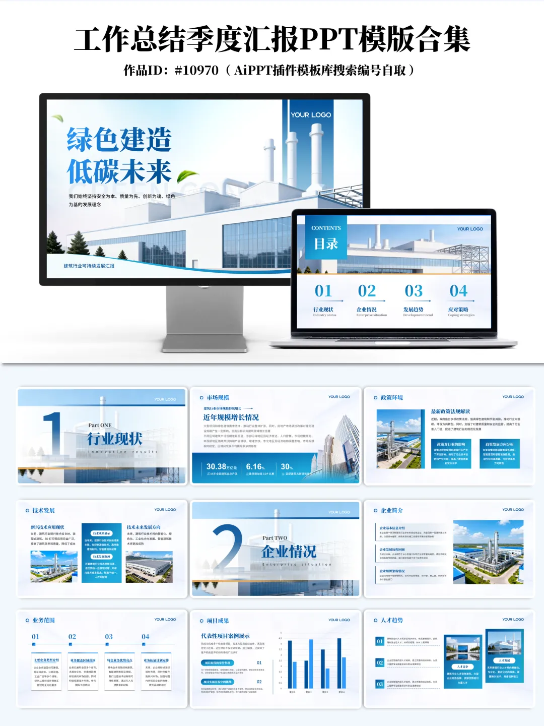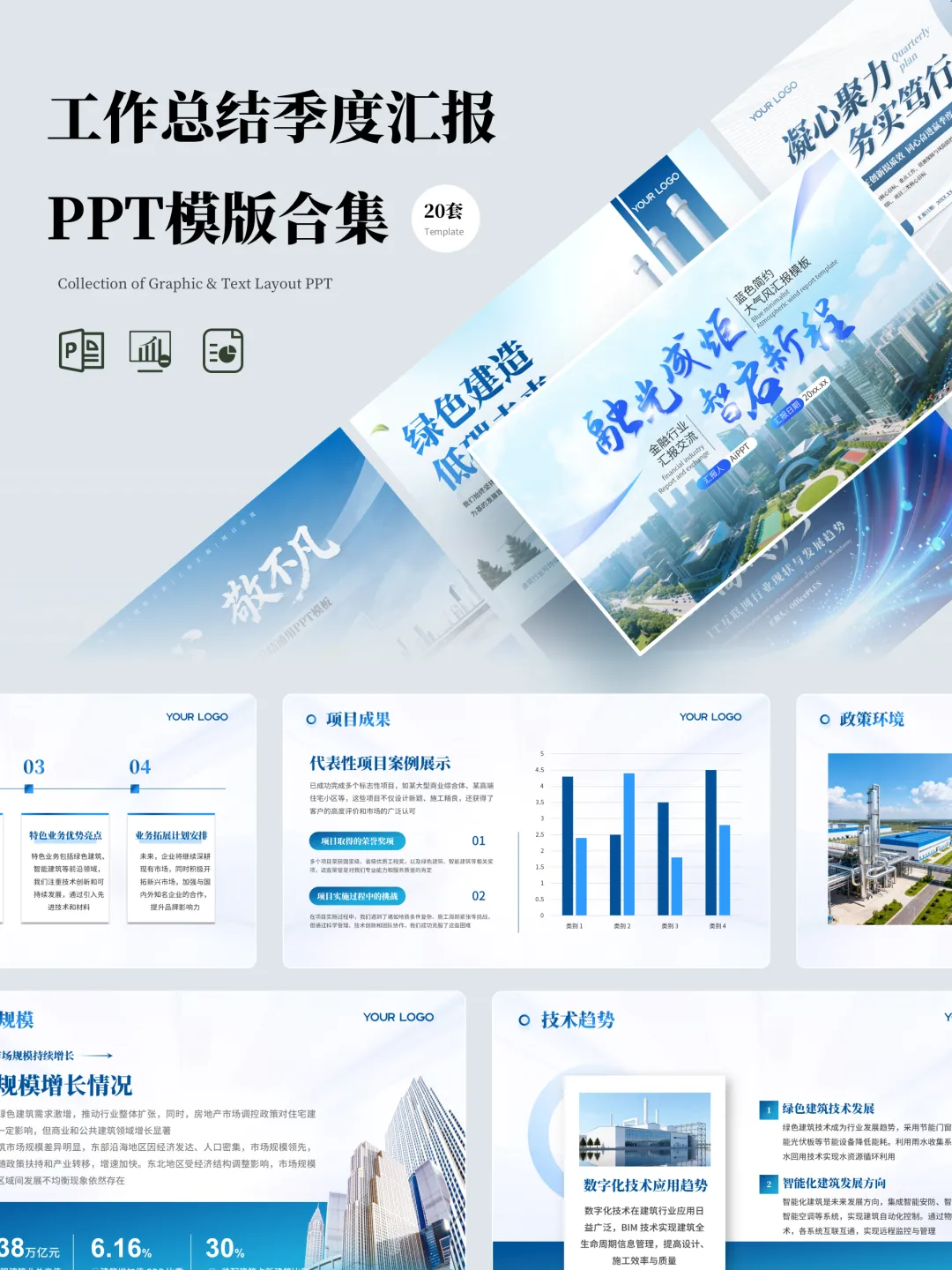 提升汇报效率,规范内容表达,助力职业化呈现在季度总结、年中述职、项目汇报等关键节点,PPT不仅是信息传递工具,更是专业能力与职业形象的重要体现。为帮助广大职场人士高效完成汇报材料的准备,我们整理并发布了 20套高质量工作总结与季度汇报PPT模板合集,涵盖建筑、金融、互联网、职业发展、项目管理等多个行业与场景,支持一键换色、高度自定义编辑、结构清晰,适用于正式汇报场合。