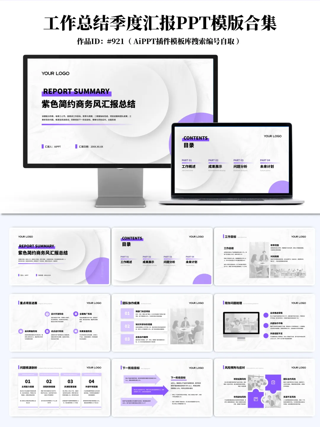 20 / 紫色简约商务风汇报总结PPT通用模板