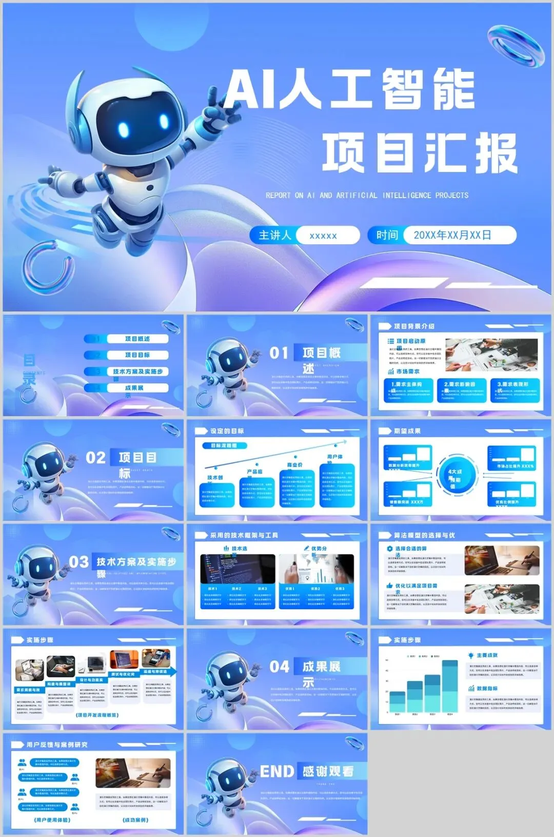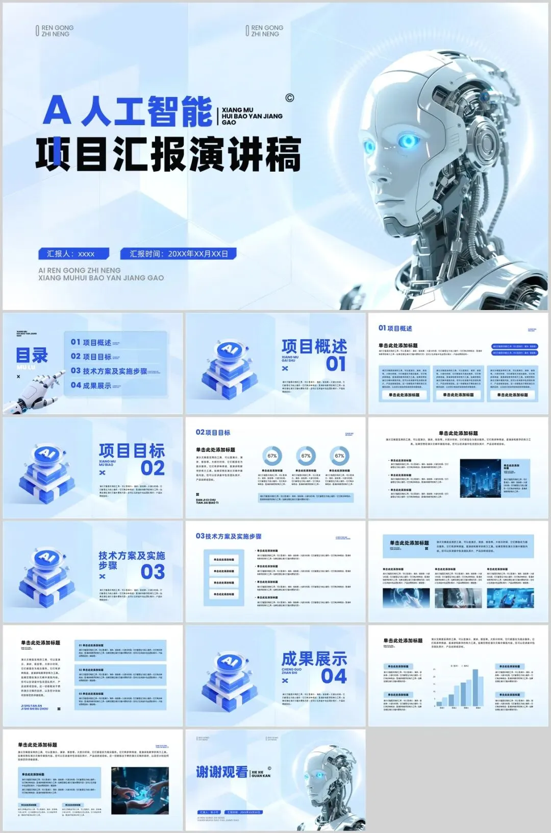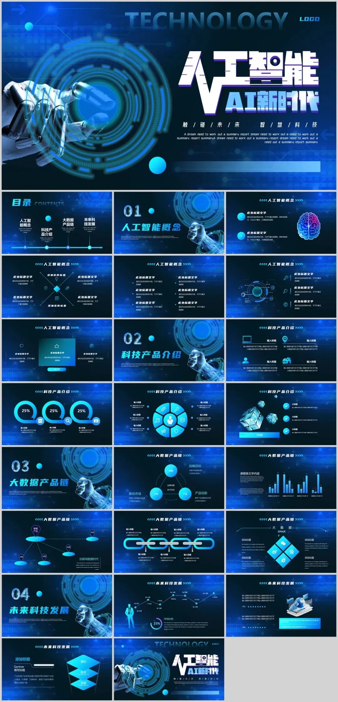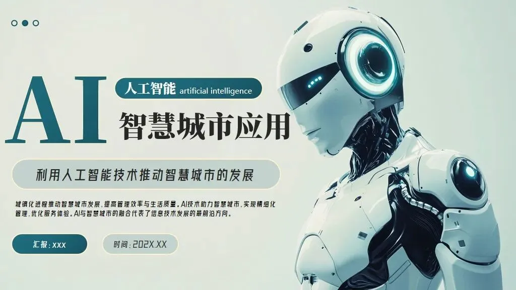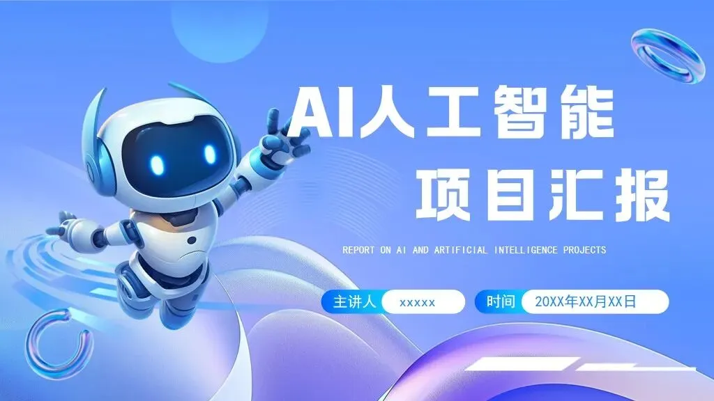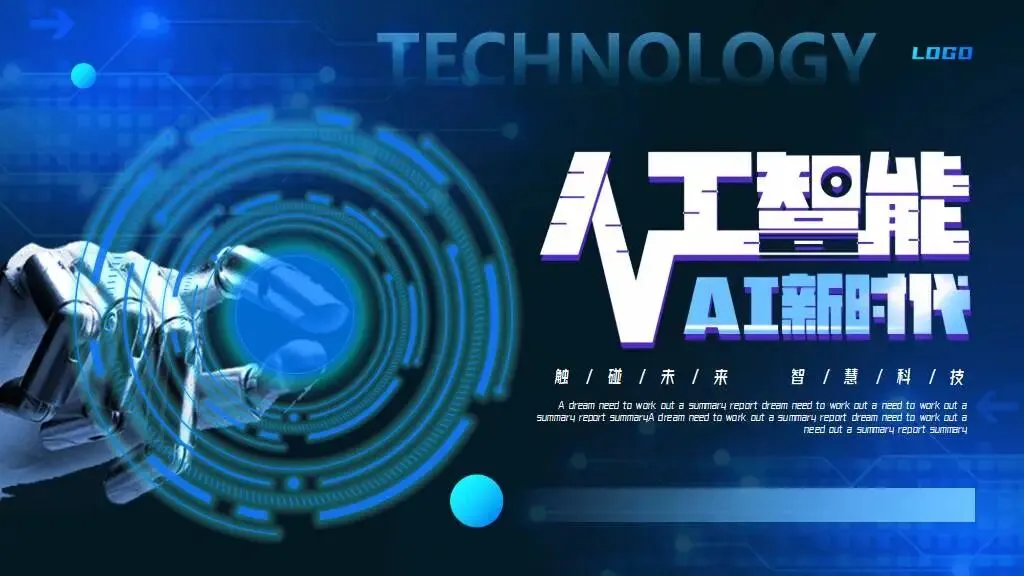 结构化:利用线条、色块将文字信息封装成“信息模块”,像代码块一样整洁。巨型字号冲击:在需要强调的页面,使用超大的数字或单词,占据半个版面,形成视觉霸权。5套AI人工智能PPT模板,免费下载方法如下: