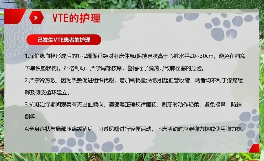 VTE 是常见的危险疾病,做好预防和护理很重要,能减少发生风险,保障患者安全。