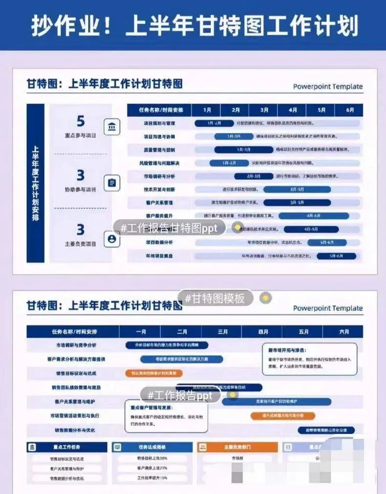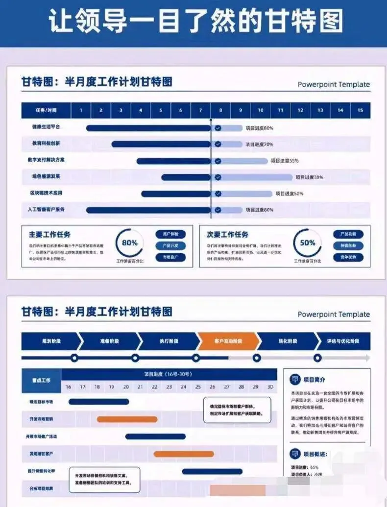 给所有职场小伙伴带来福音!我们整理了全网最新的PPT模板和甘特图资源,涵盖工作计划、总结、述职报告等多个场景。简约商务风格,拿来即用,可编辑修改,绝对超值好用!网盘链接随时失效,有需要的尽快保存!