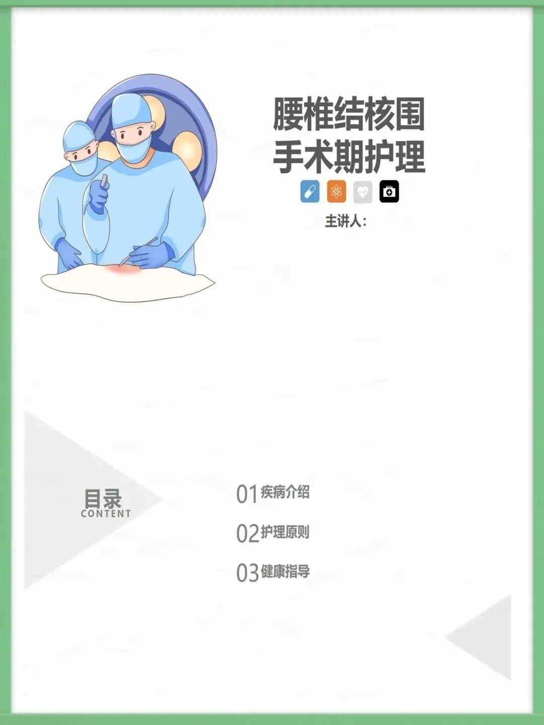 >腰椎结核围手术期护理ppt模板(附演讲稿)
