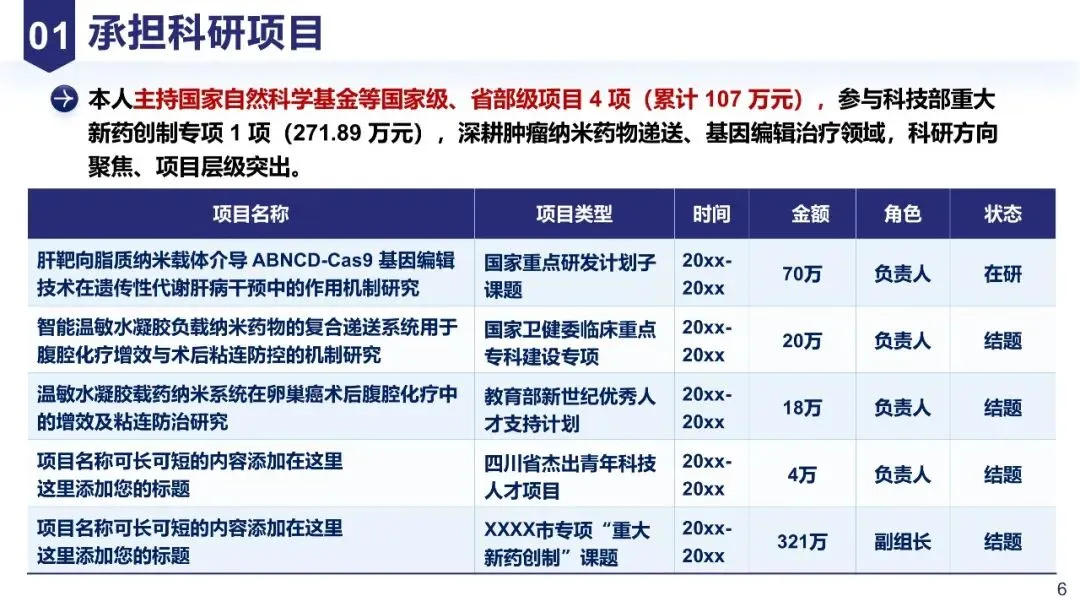 注意事项:不罗列参与的所有项目,避免与导师团队项目混淆,明确体现“独立主持科研的能力”。