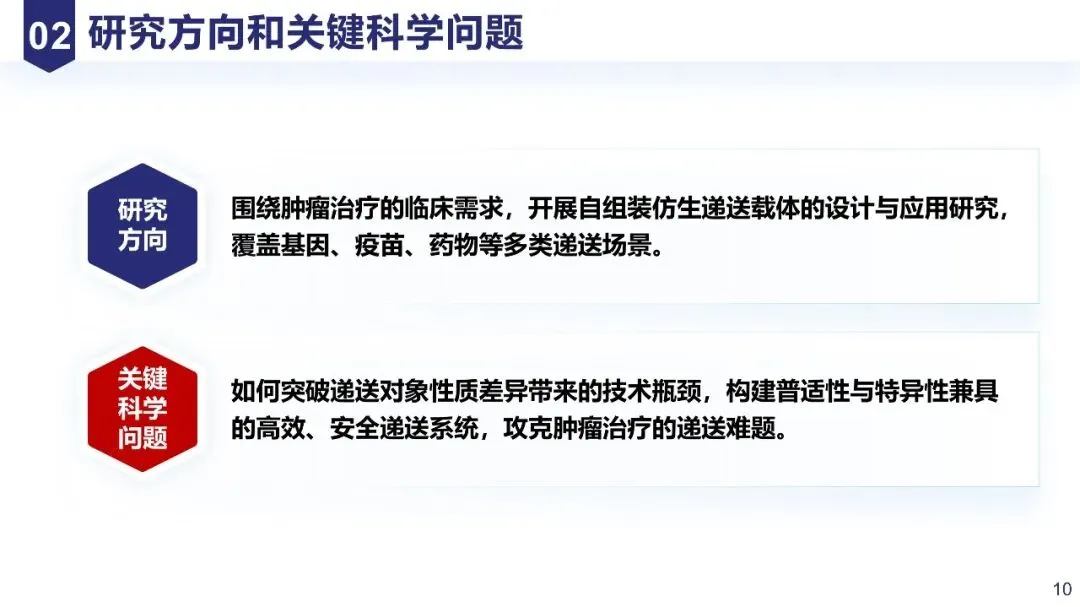 研究方向明确不宽泛,关键科学问题提炼1-2个(如“1. XXX分子的作用机制;2. XXX技术在XX场景的应用瓶颈”),逻辑递进,与研究背景呼应。