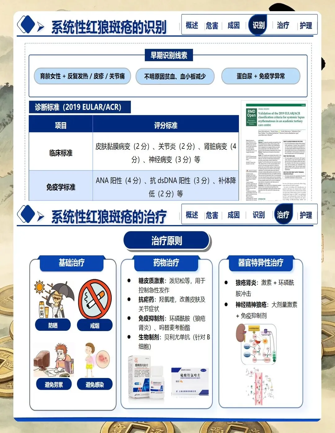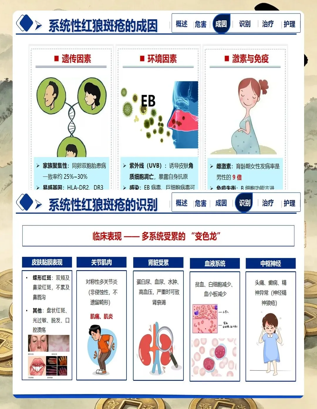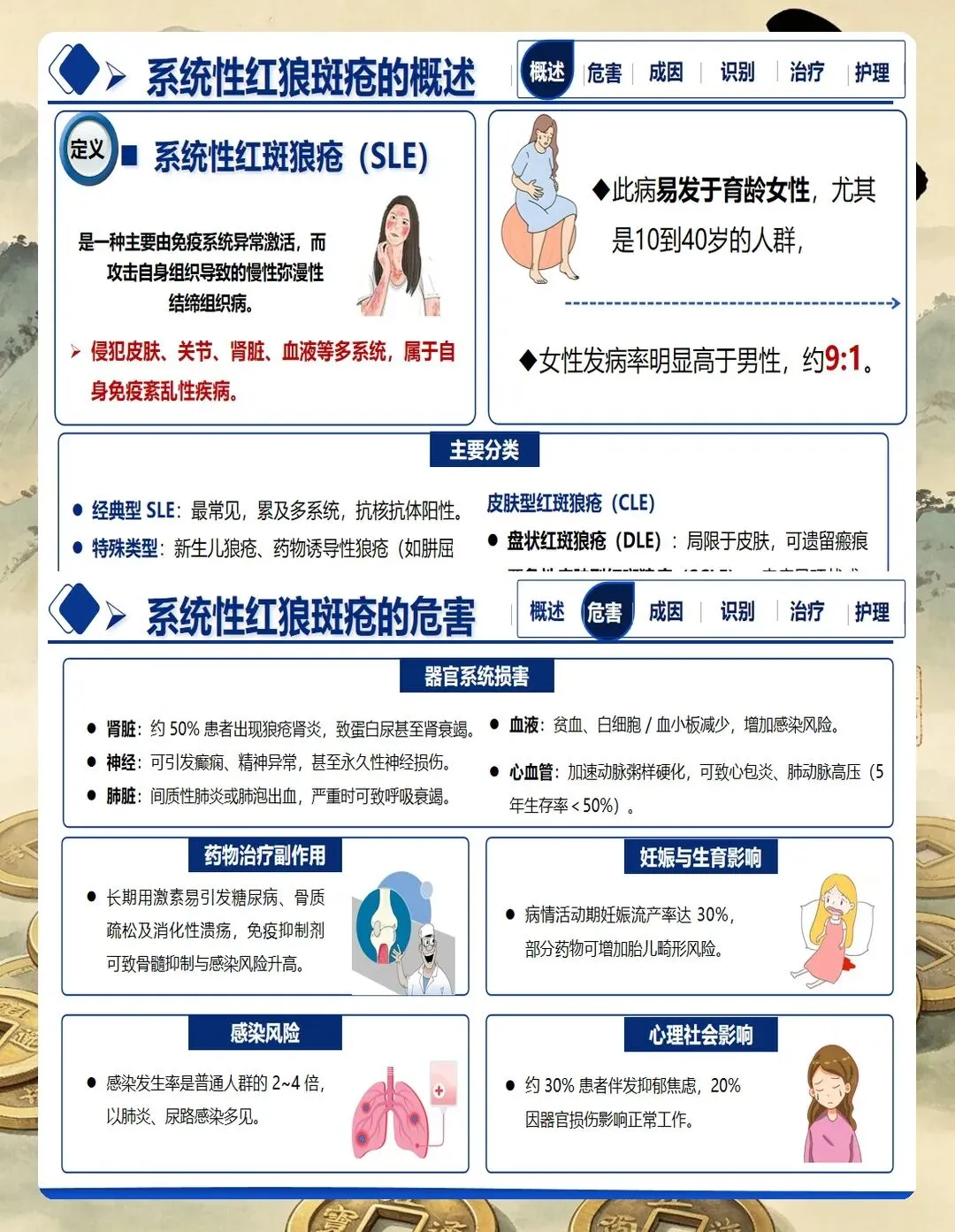 系统性红斑狼疮是一种累及多系统、多器官的自身免疫性疾病,临床表现复杂多样,病程迁延反复。患者以育龄期女性为主,疾病本身及治疗药物对身体形象、生育功能、心理健康均有显著影响。