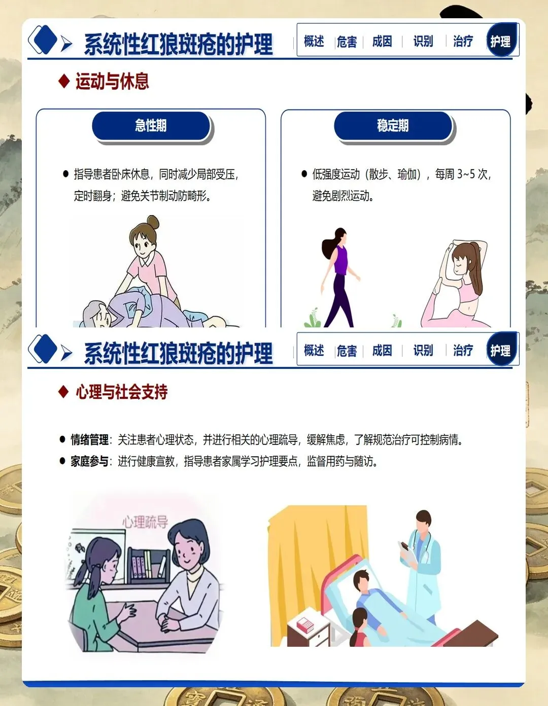 护理工作需贯穿疾病全程,从急性期的症状控制到缓解期的健康维护,从药物治疗管理到生活方式指导,护理人员承担着协调者、教育者、支持者等多重角色。