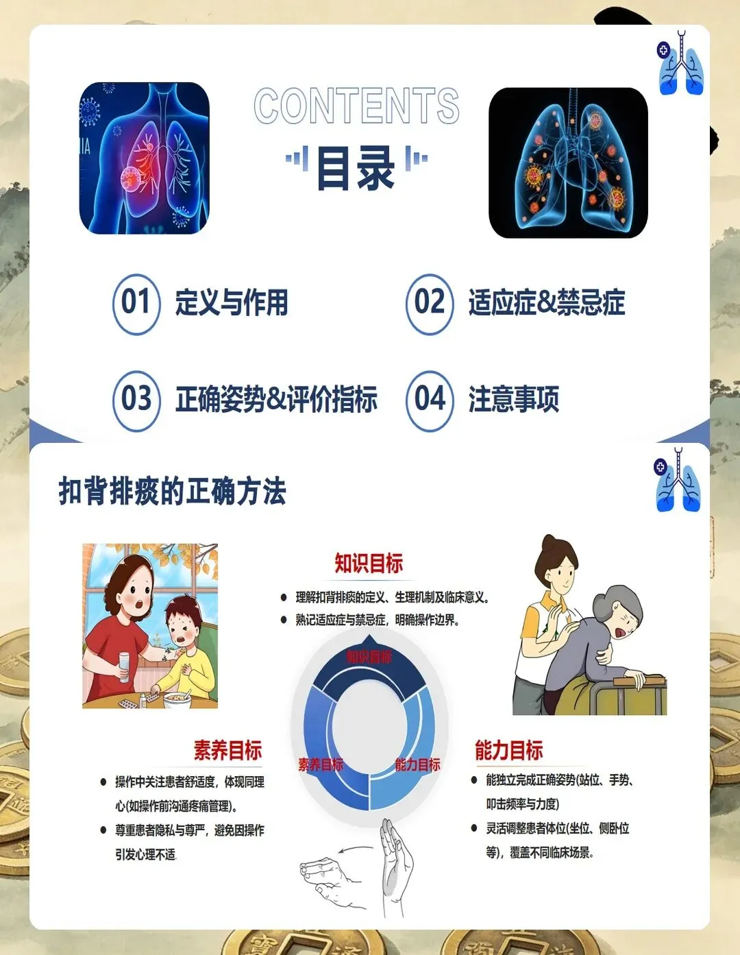 排痰护理能力是呼吸系统疾病患者护理的核心技能,涉及评估技术、物理治疗、用药管理、健康教育等多个维度