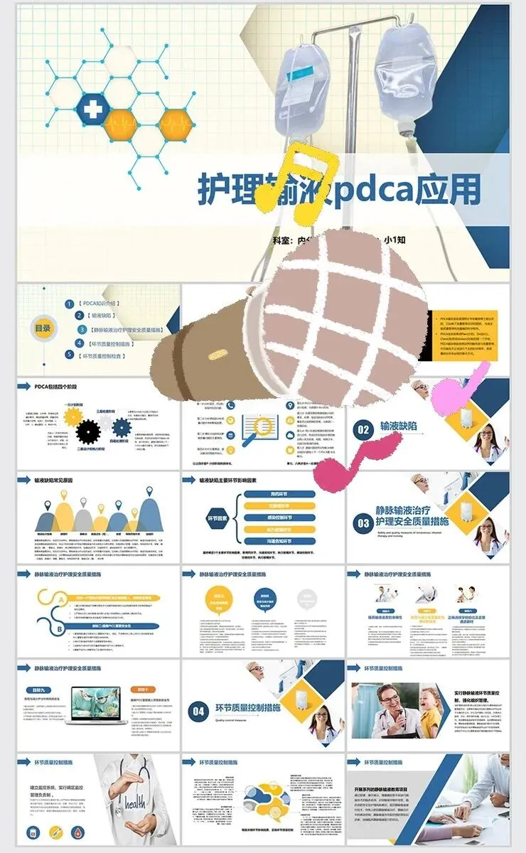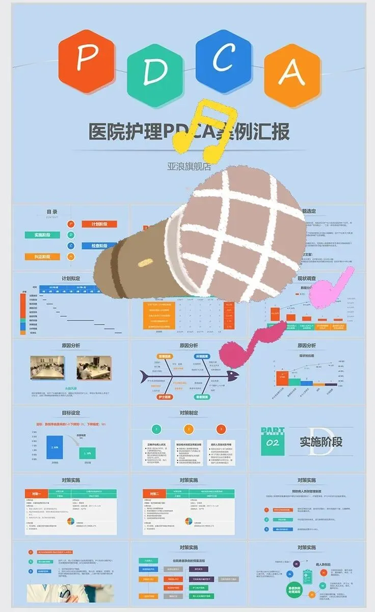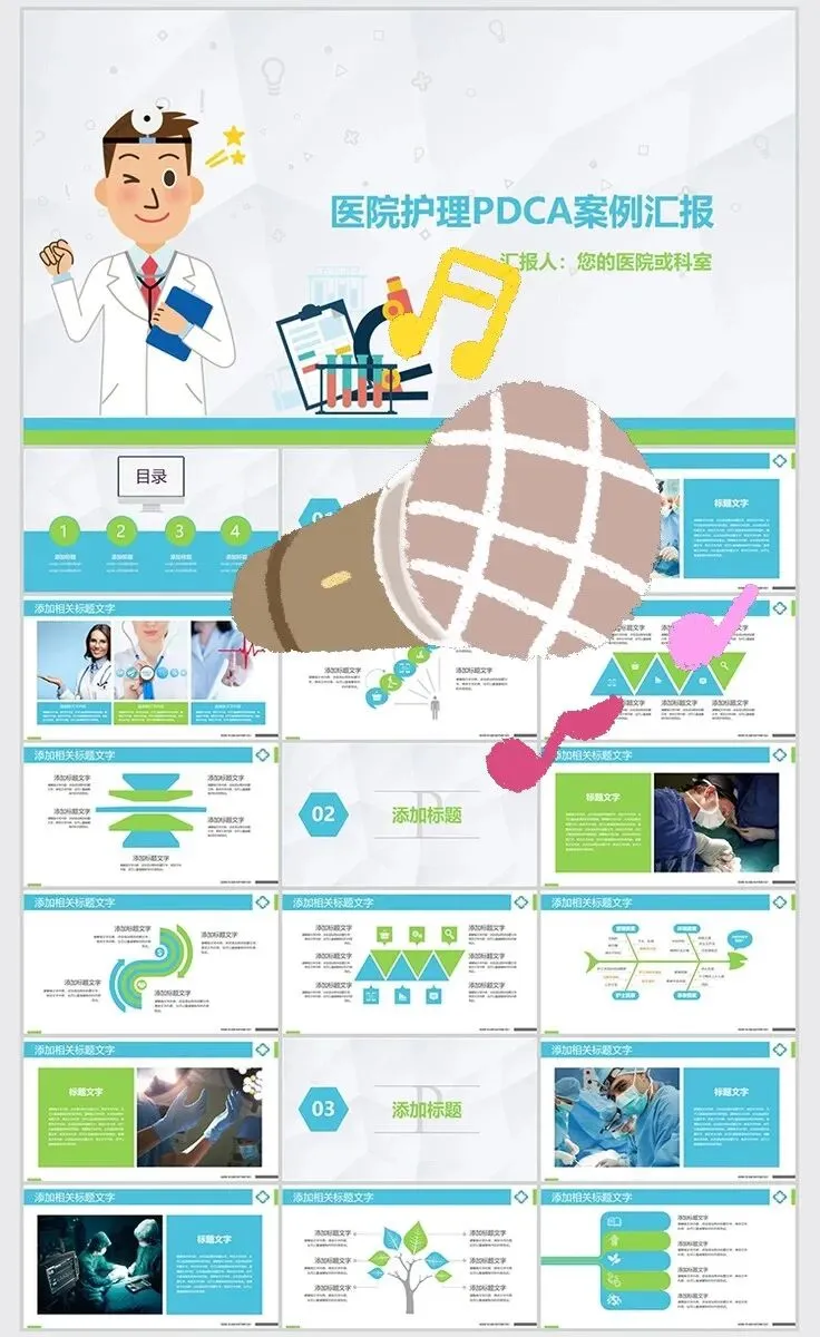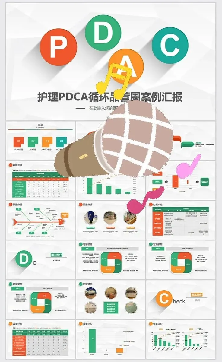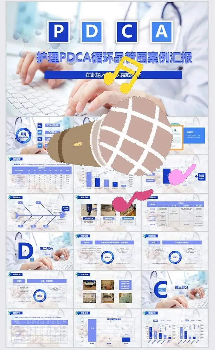【PPT模板】医疗护理PDCA循环案例品管圈成果汇报PPT模板医生护士工作方法wps
