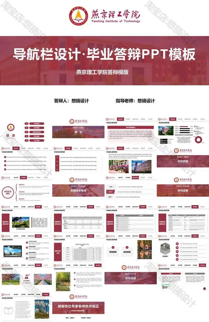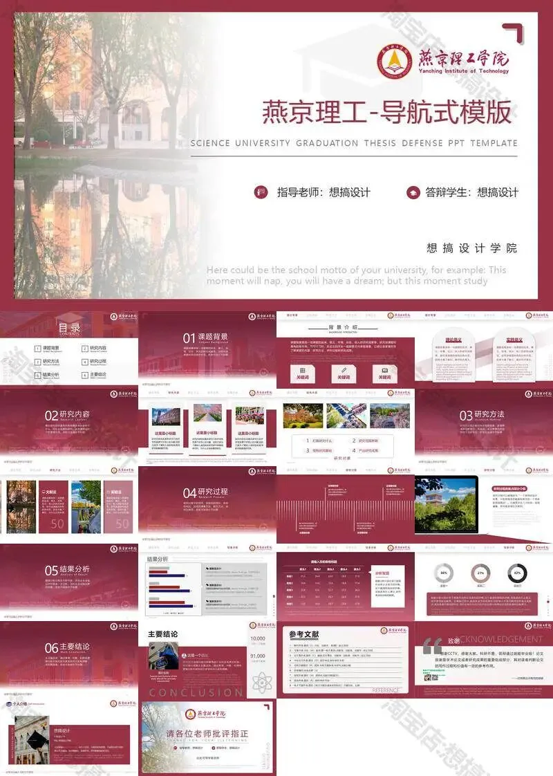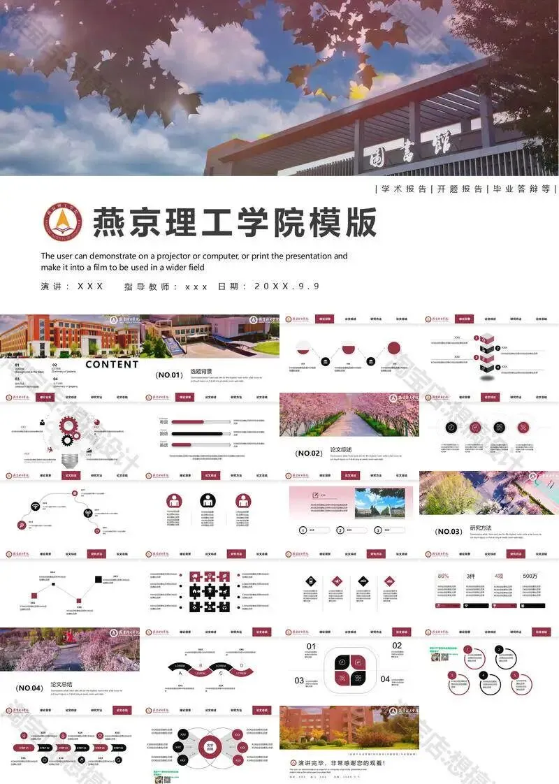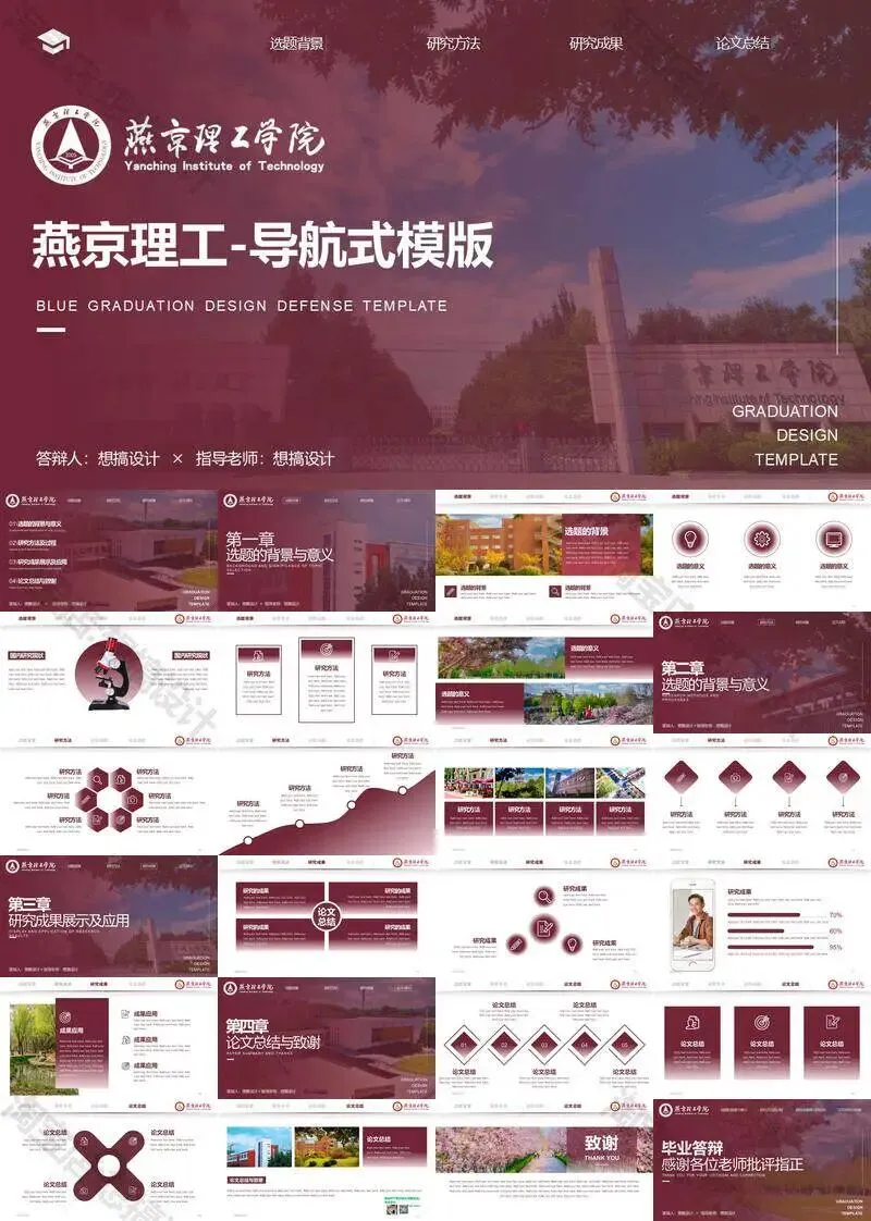 >燕京理工学院毕业答辩PPT模板汇报幻灯片课件总结大学生作品