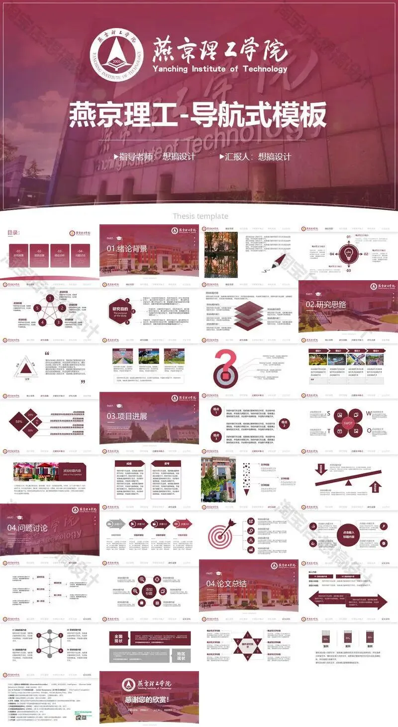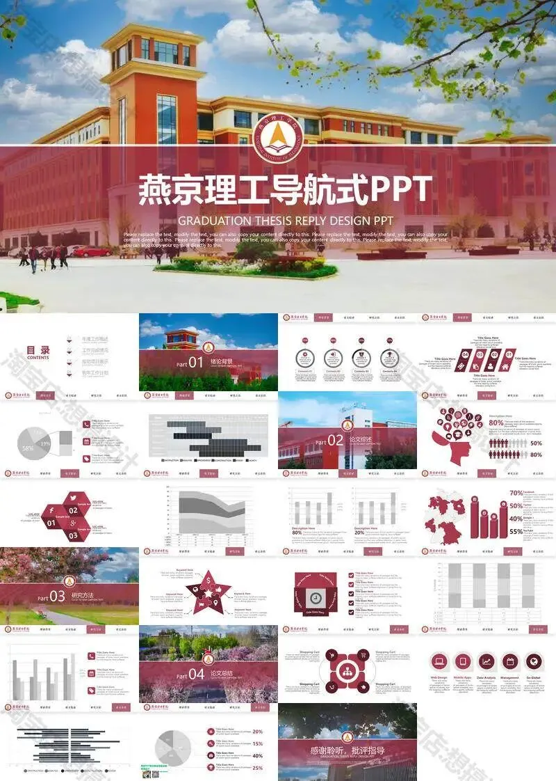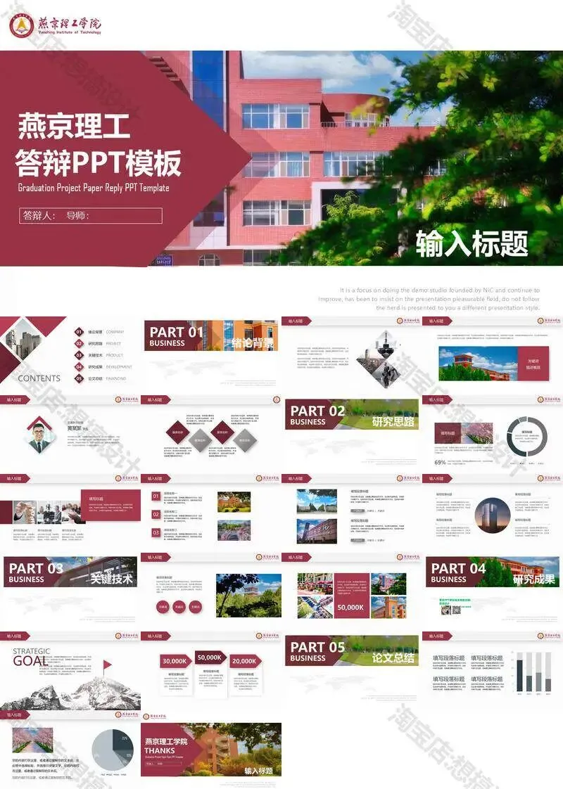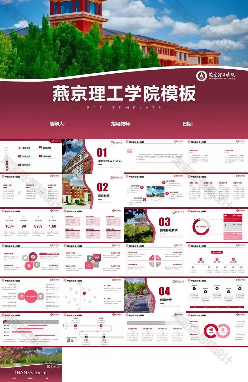 >燕京理工学院毕业答辩PPT模板汇报幻灯片课件总结大学生作品