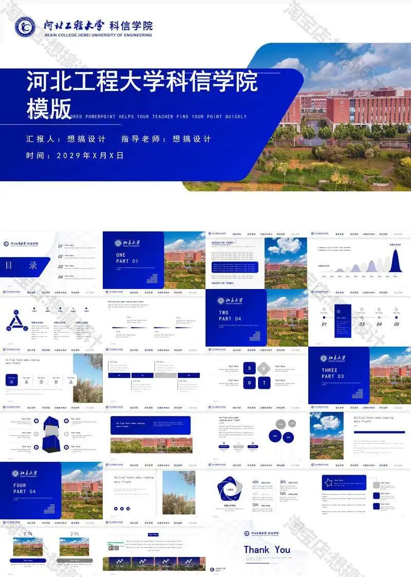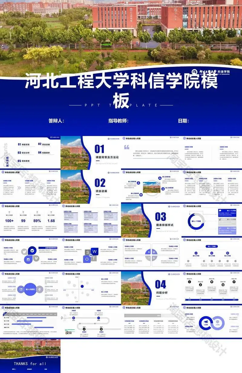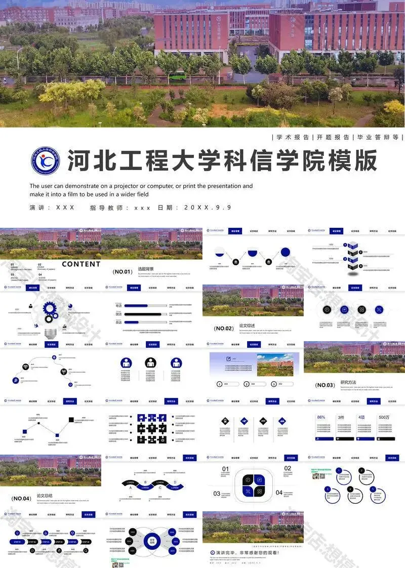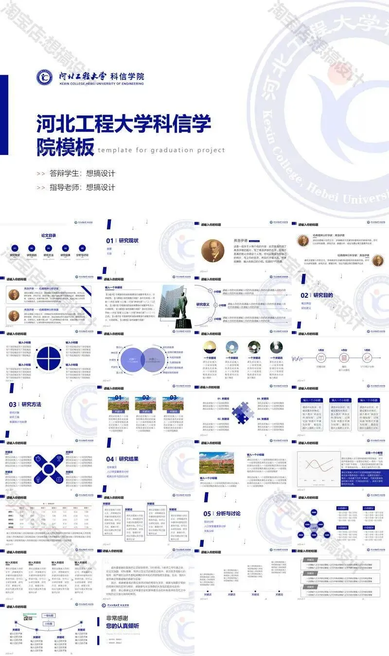 >河北工程大学科信学院PPT模板毕业答辩组会汇报