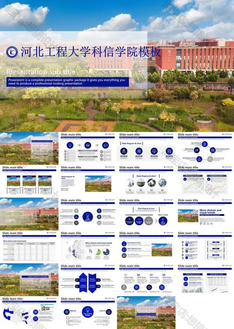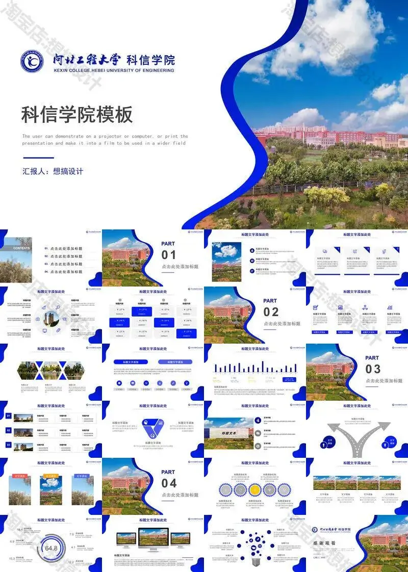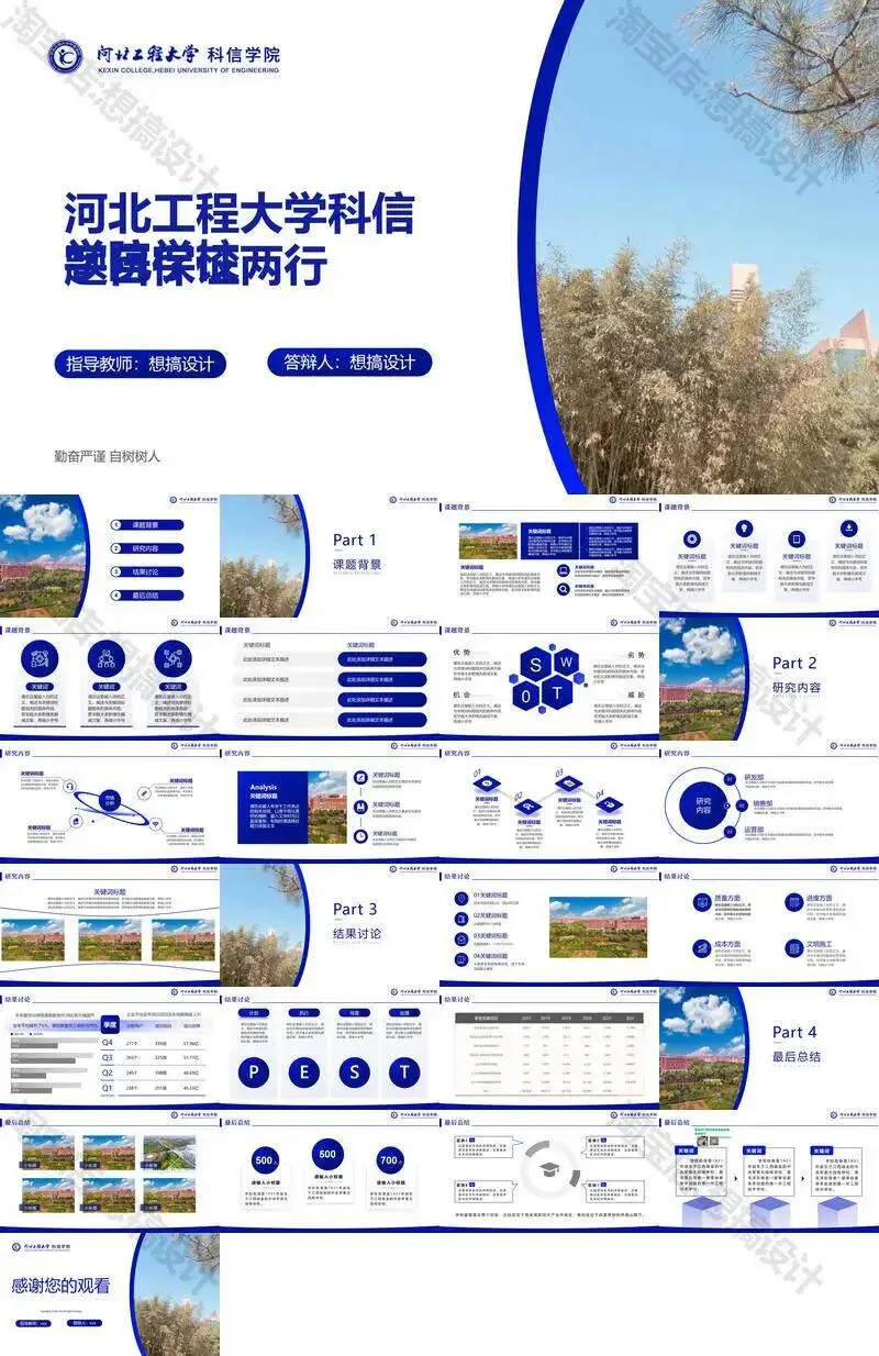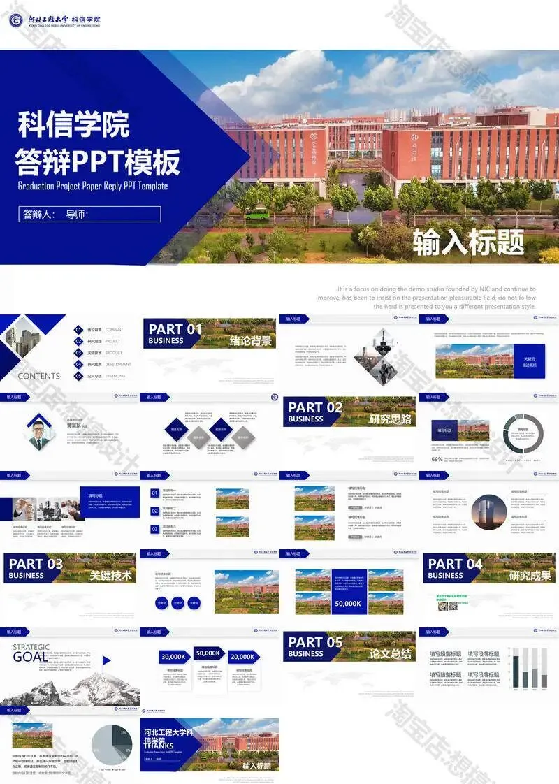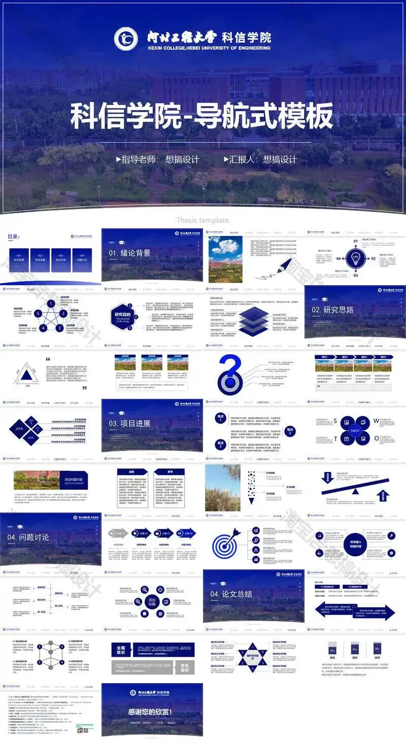 >河北工程大学科信学院PPT模板毕业答辩组会汇报