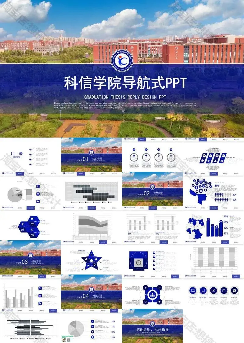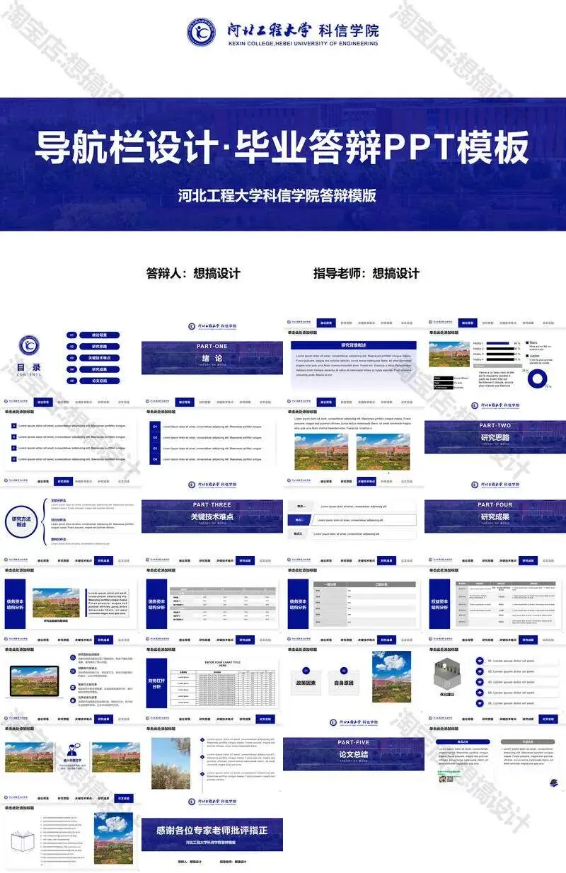 河北建筑工程学院毕业答辩PPT模板汇报幻灯片课件总结大学生