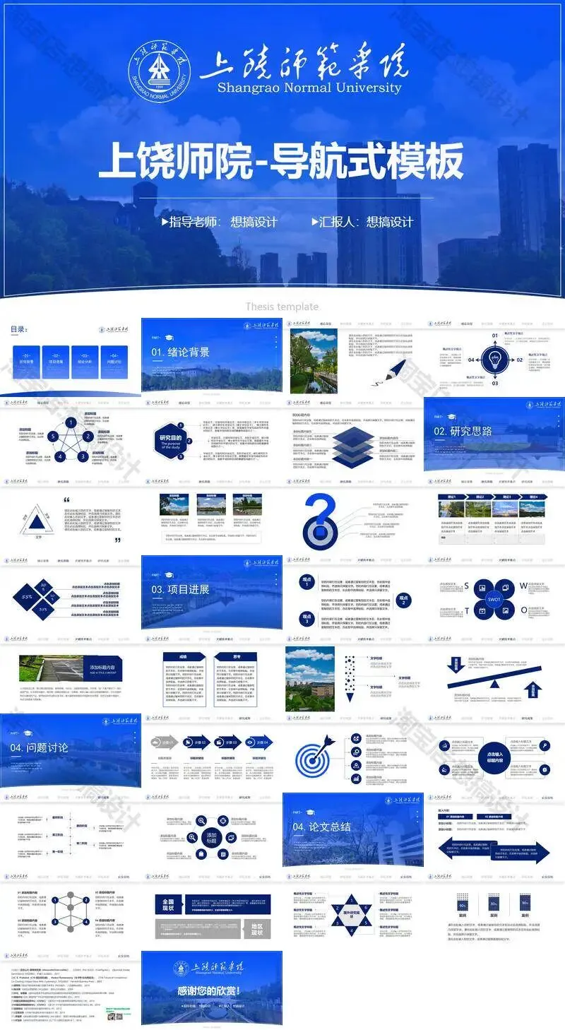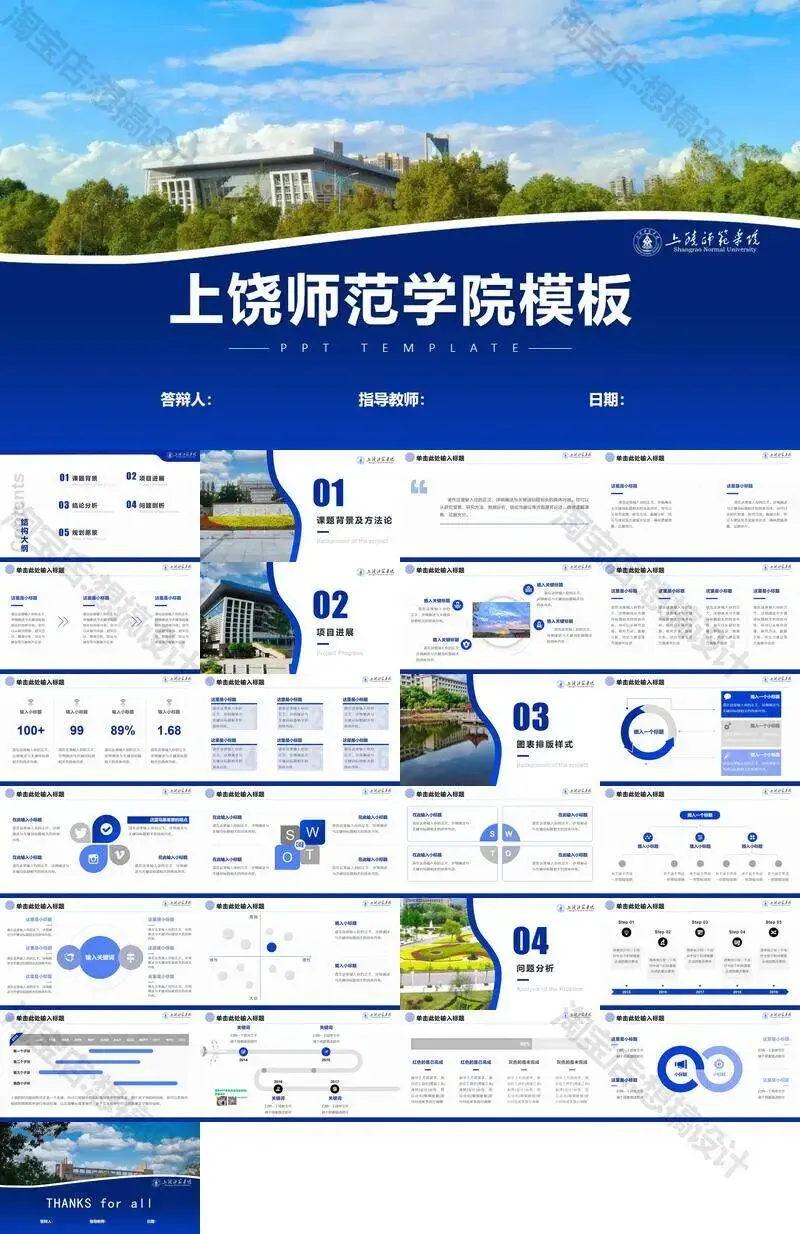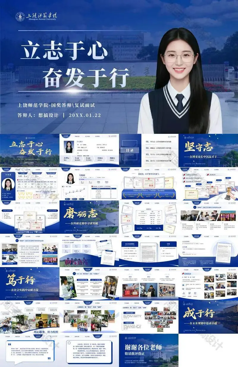 上饶师范学院毕业答辩PPT模板汇报幻灯片课件总结大学生作品
