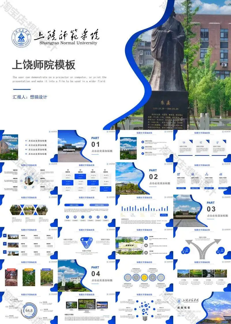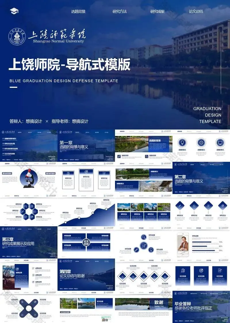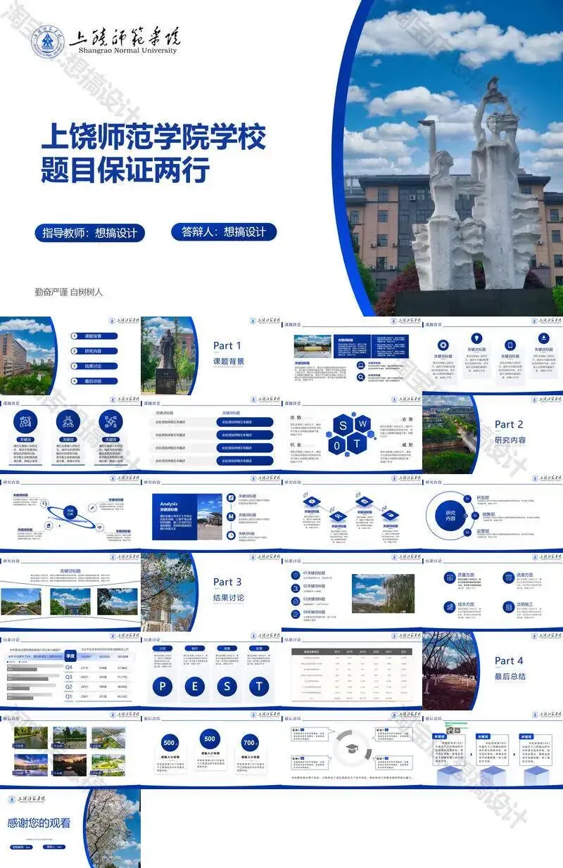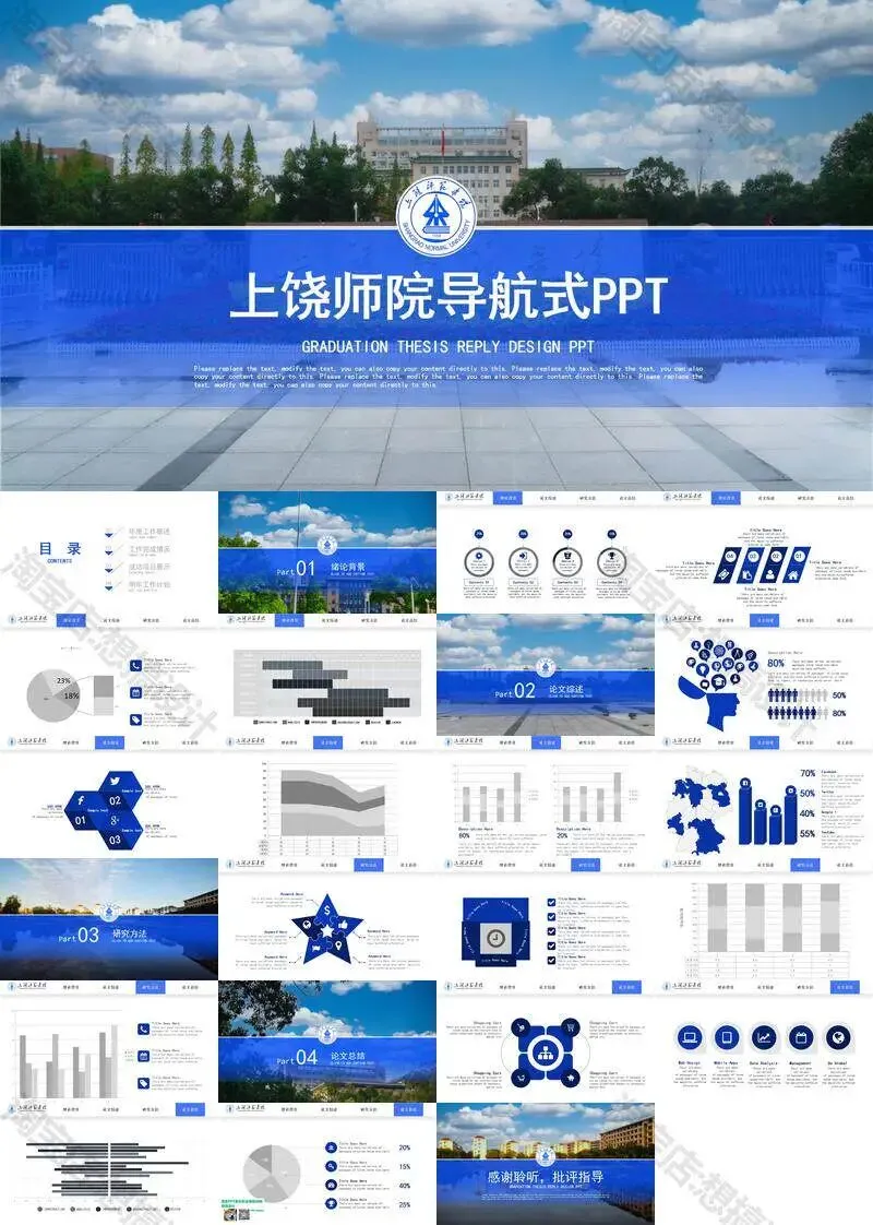 >上饶师范学院毕业答辩PPT模板汇报幻灯片课件总结大学生作品