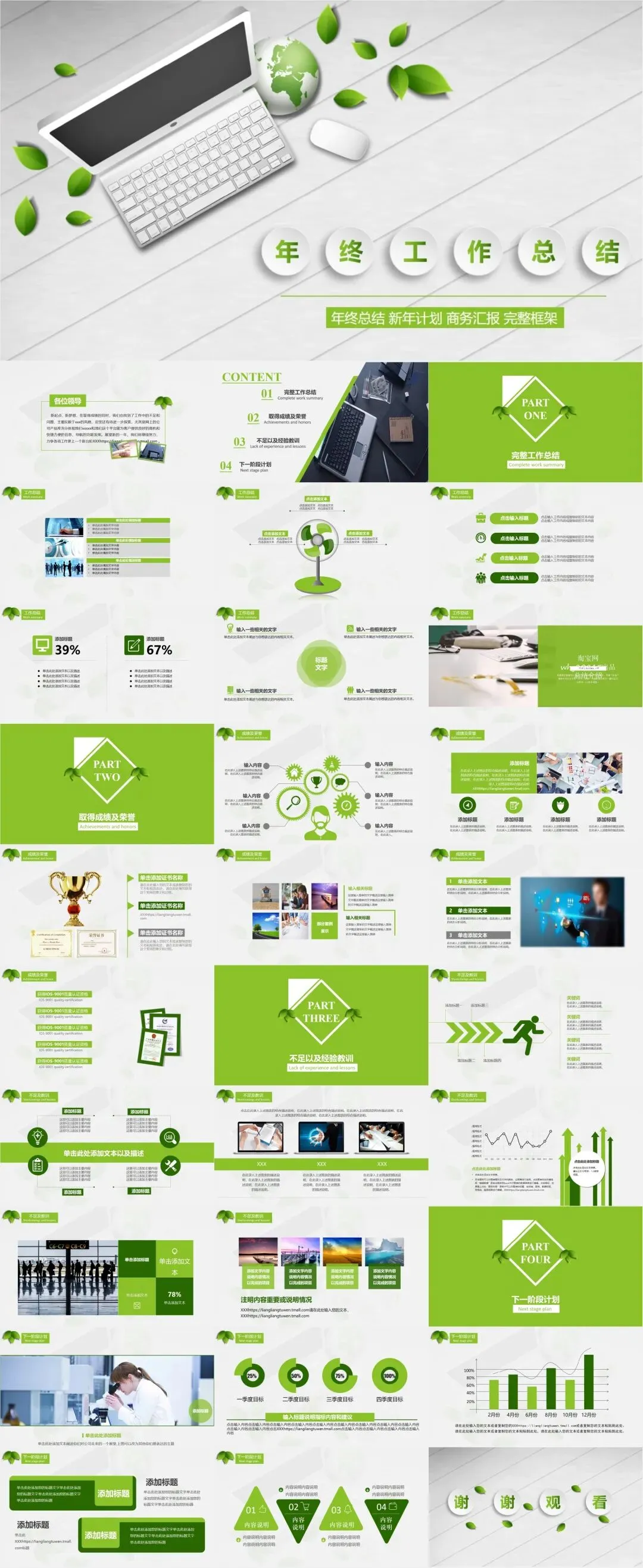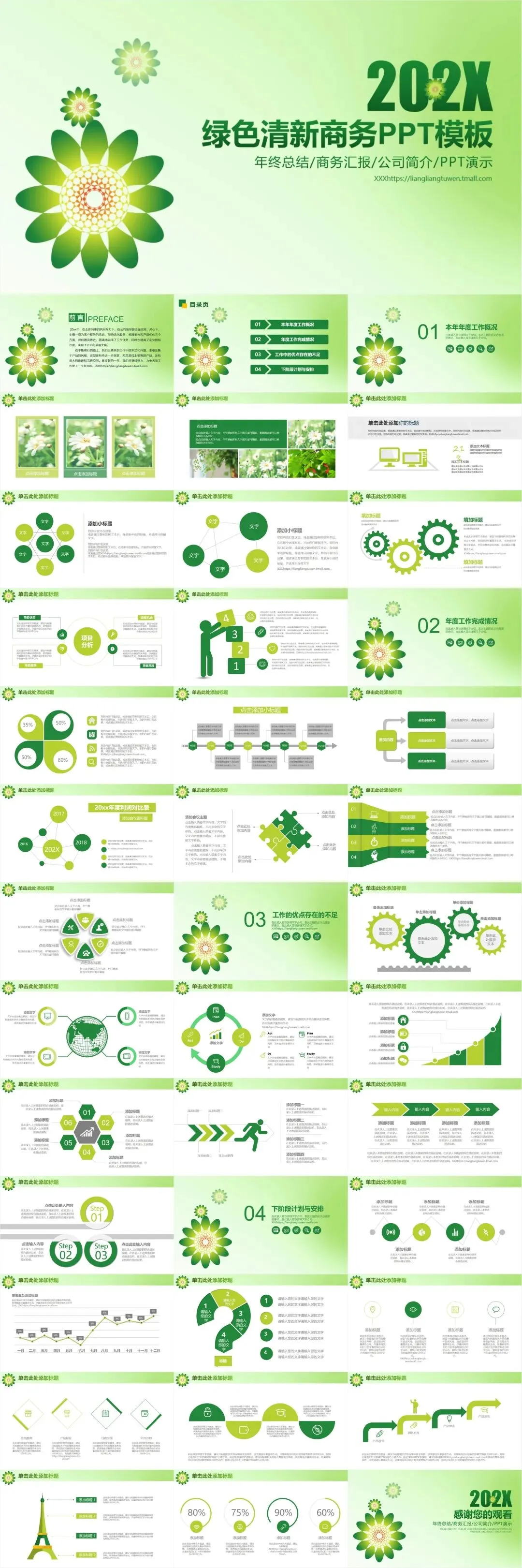 今天分享的是【37套清新绿色护眼色系列PPT模板