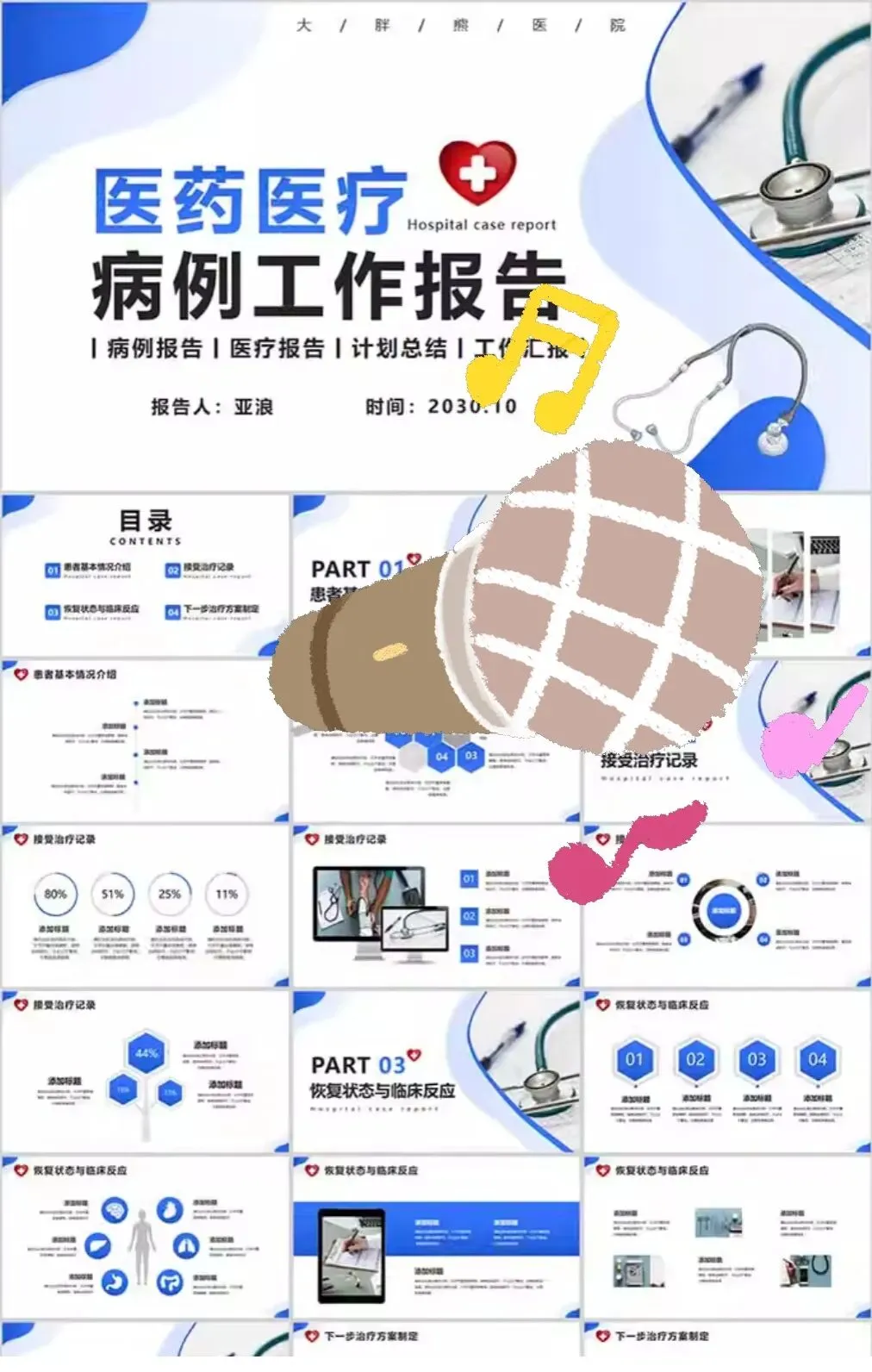 【PPT模板】医院病人病例报告PPT模板医疗护理病历疑难病例讨论研讨分析报告