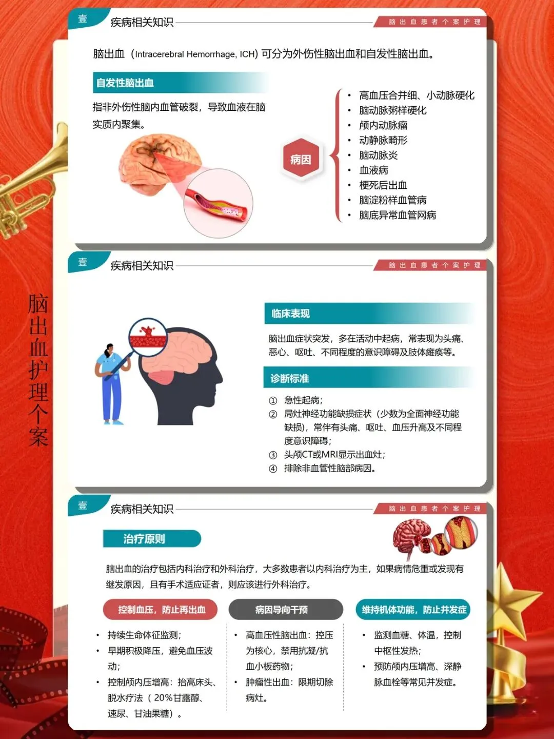 急性期护理是脑出血救治的关键阶段,护理工作的核心是"稳"和"防"。稳,即稳定生命体征,防止病情恶化;防,即预防并发症,为后期康复奠定基础。