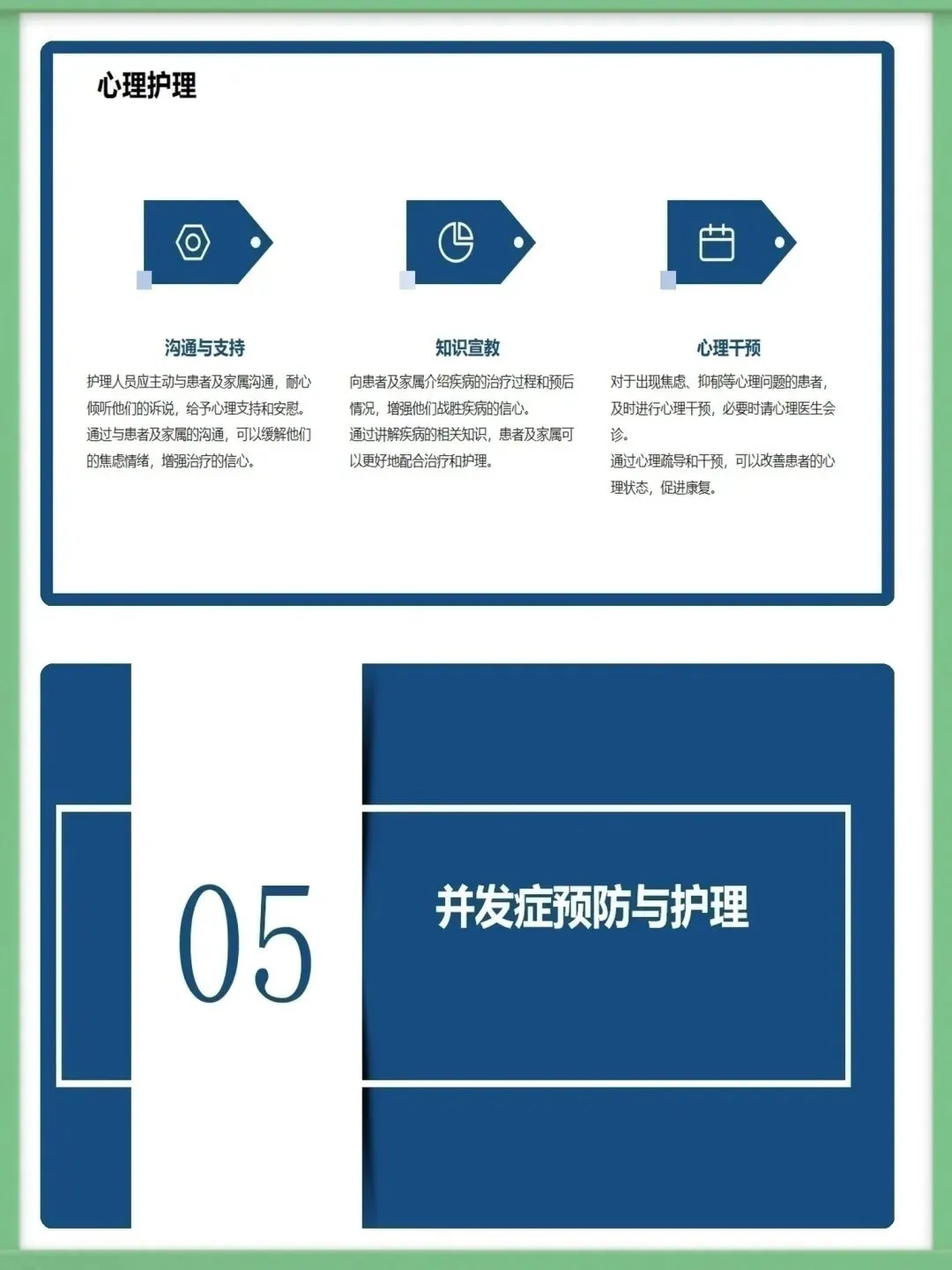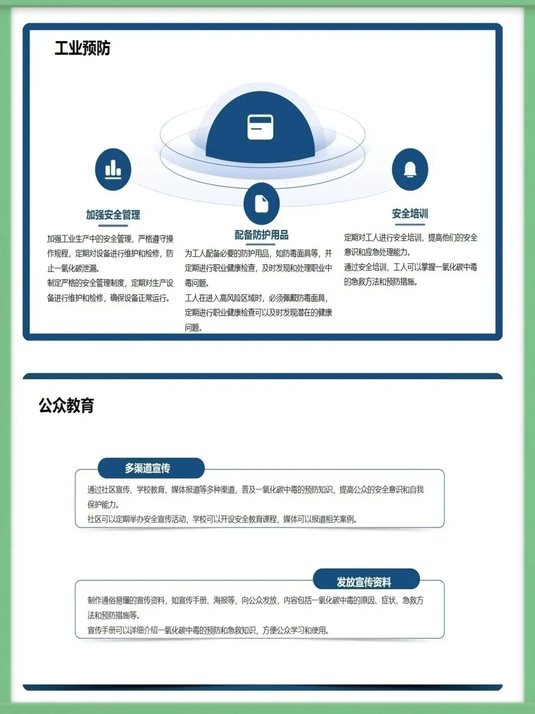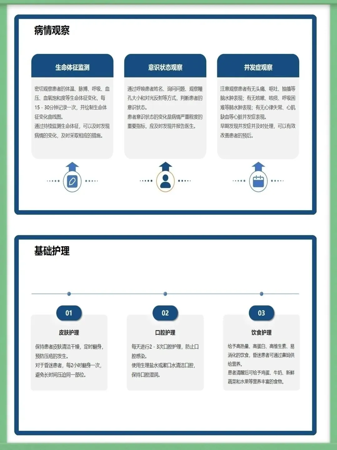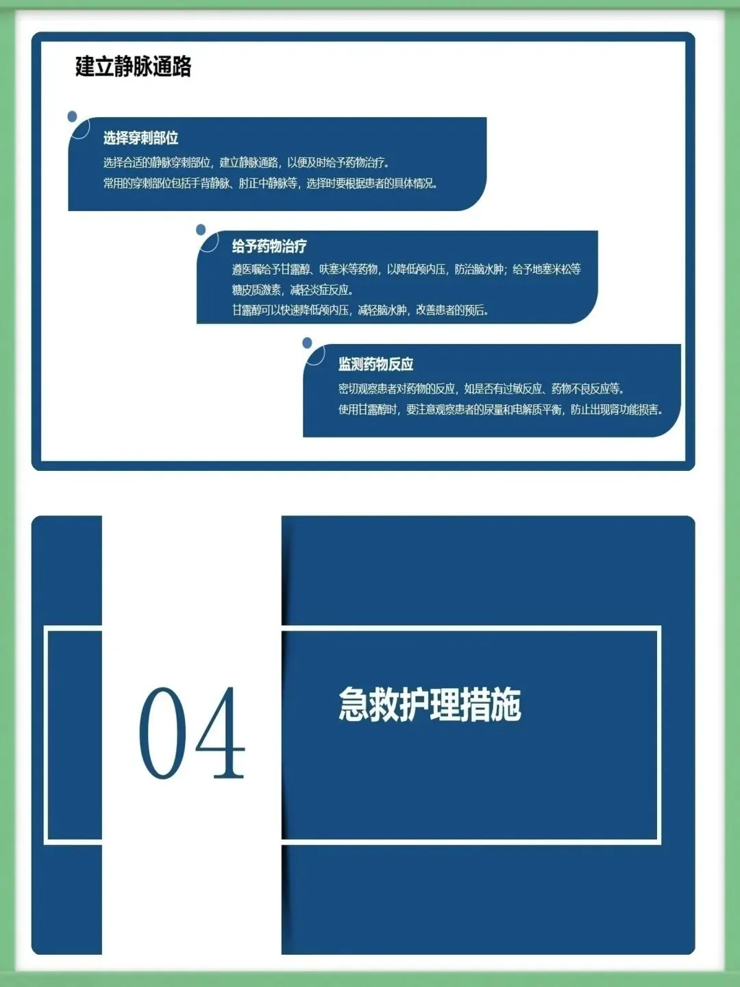 各位同仁,大家好。今天为大家讲解急性一氧化碳中毒的急救护理知识。一氧化碳为无色无味、密度近空气、难溶于水的有毒气体,工业泄漏、交通尾气、家庭取暖不当是常见中毒诱因,冬季为家庭中毒高发期,需提高警惕。一氧化碳与血红蛋白亲和力远高于氧气,结合形成碳氧血红蛋白致组织缺氧,脑细胞缺氧4-6分钟即不可逆损伤,还会引发代谢紊乱,加重组织缺氧与酸中毒,形成病理恶性循环。中毒按程度分轻中重度,轻度有头痛、乏力等症状,中度意识模糊且皮肤黏膜呈樱桃红色,重度深昏迷并伴脑水肿、呼吸循环衰竭等严重并发症,碳氧血红蛋白浓度对应不同中毒程度。急救需先确保环境安全,迅速将患者转移至空气新鲜处,保持呼吸道通畅,清除分泌物并及时辅助呼吸,同时给予8-10L/min高流量吸氧,高压氧治疗为最有效手段,需持续监测氧合情况。急救护理需严密监测生命体征与意识状态,做好皮肤、口腔、饮食基础护理,同时给予患者及家属心理支持与疾病知识宣教,早期识别并处理各类并发症,改善患者预后。中毒并发症以脑水肿、迟发性脑病为主,需遵医嘱使用脱水剂、抬高患者头部,向家属宣教迟发性脑病知识,开展康复训练并定期随访,同时从家庭、工业、公众层面做好预防,从源头降低中毒风险。以上为急性一氧化碳中毒急救护理的核心内容,希望大家熟练掌握,在临床中争分夺秒守护患者生命。感谢聆听!