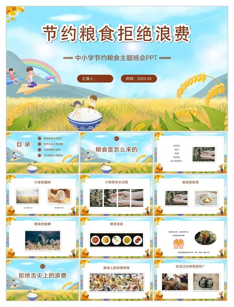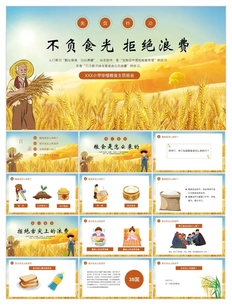本文分享:[30+套]节约粮食系列PPT模板(免费下载)