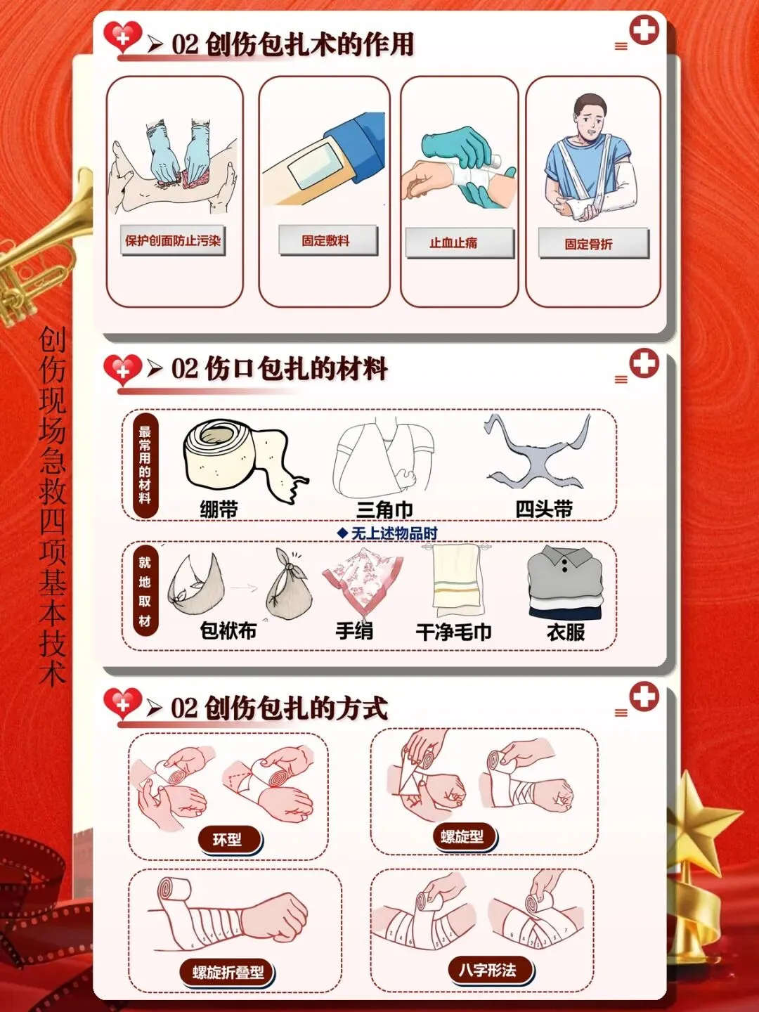 二、包扎技术:保护伤口预防感染