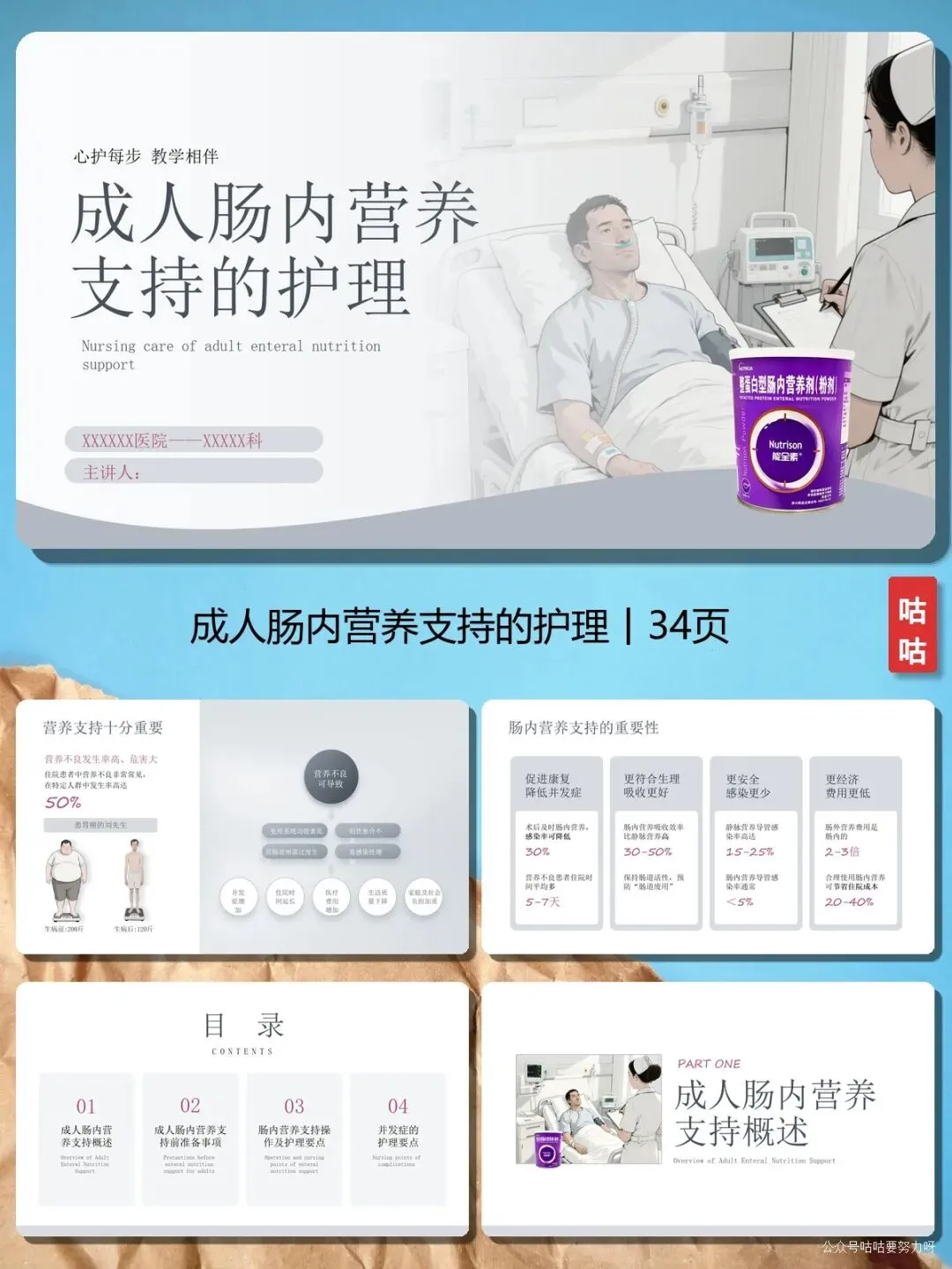 今天给大家分享的是成人肠内营养支持的护理PPT,模板可编辑,工作忙没时间做,直接在上面改好就用!
