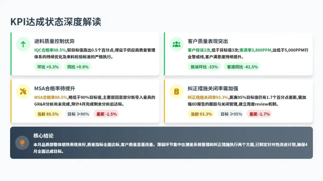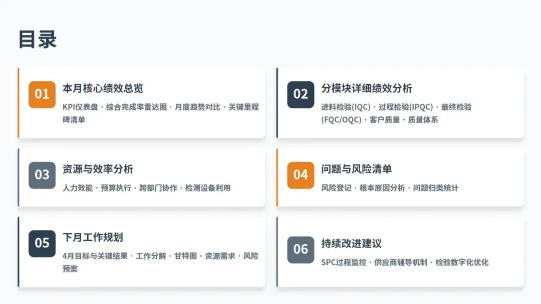 35页品质部月度工作总结及规划PPT模板,干货满满!