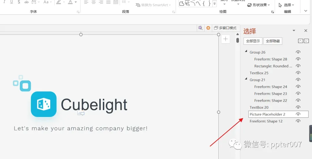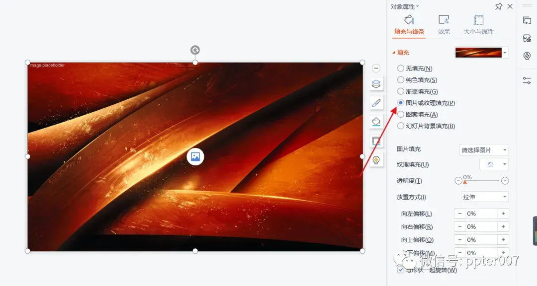 如果是背景图片,可以先在选择窗格中,把图片占位符对象放到第一个位置,图片占位符就会置于顶层,便于选择和填充图片,填充好以后再从选择窗格中把位置复原到最底层即可。动画不受影响,依然保持。