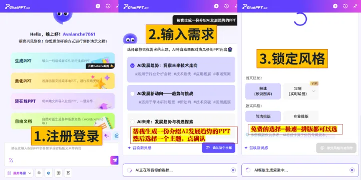 1、本次分享的AI自动生成PPT非常实用,小白轻松上手,而且还免费,避免熬夜加班的局面。