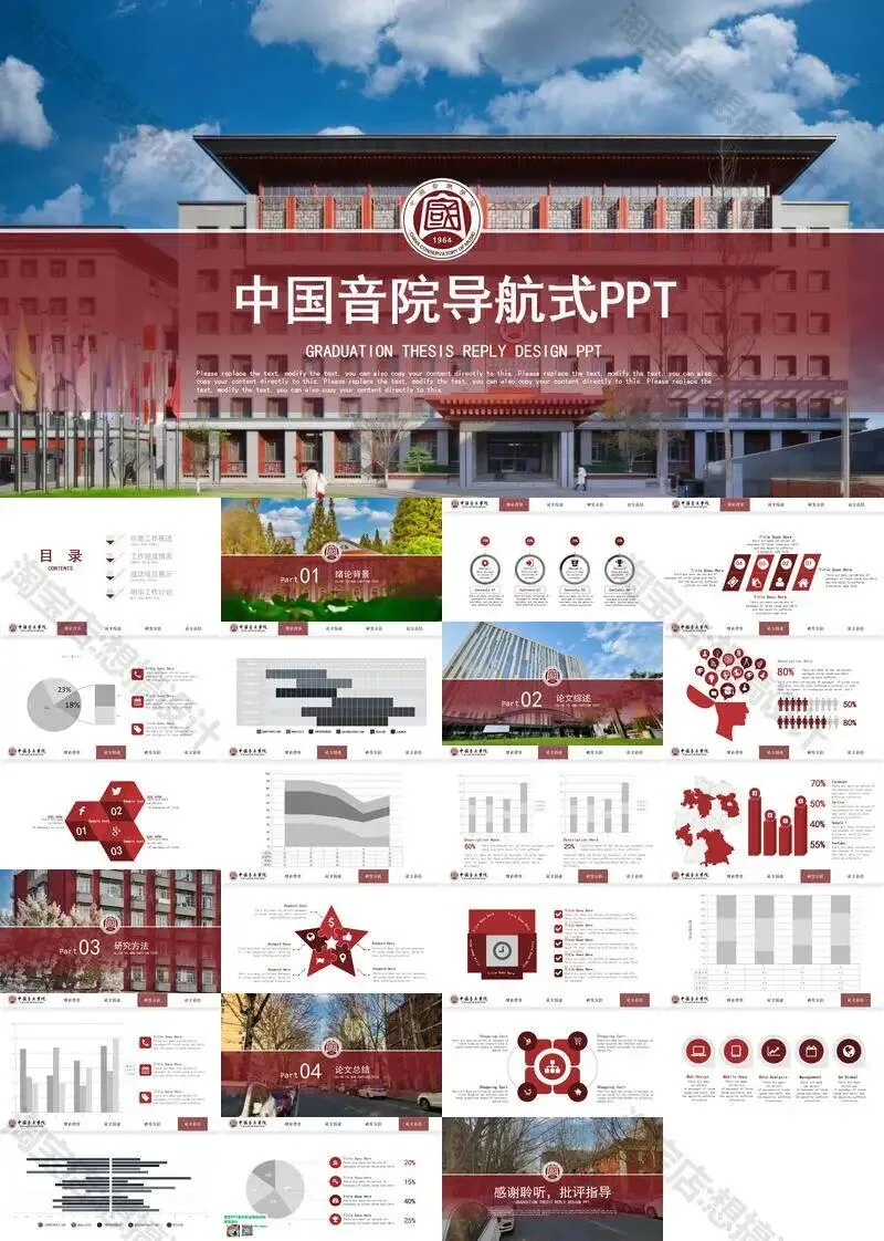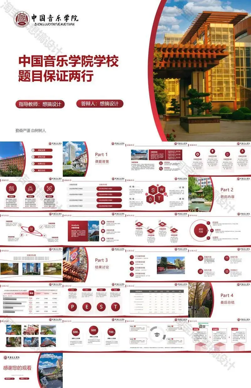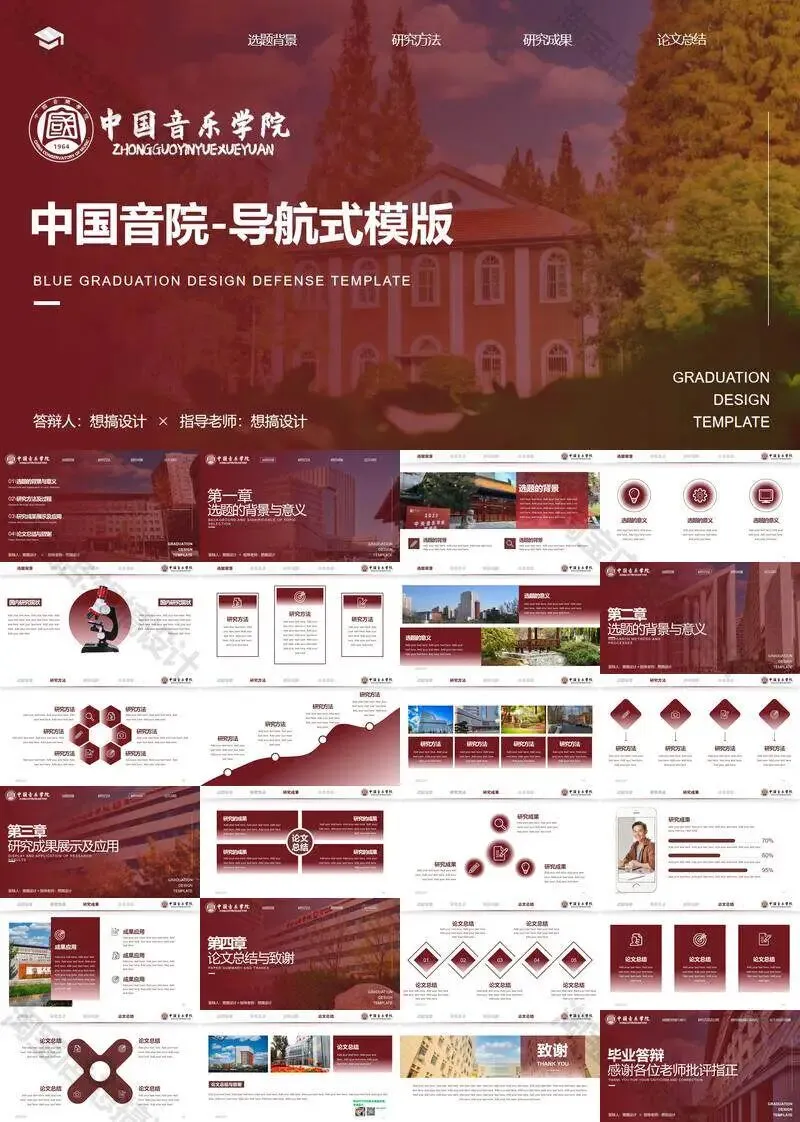 中国音乐学院毕业答辩PPT模板汇报幻灯片课件总结大学生作品