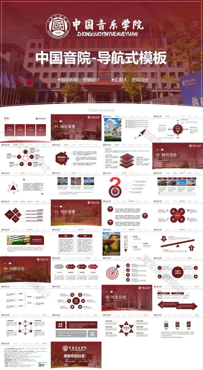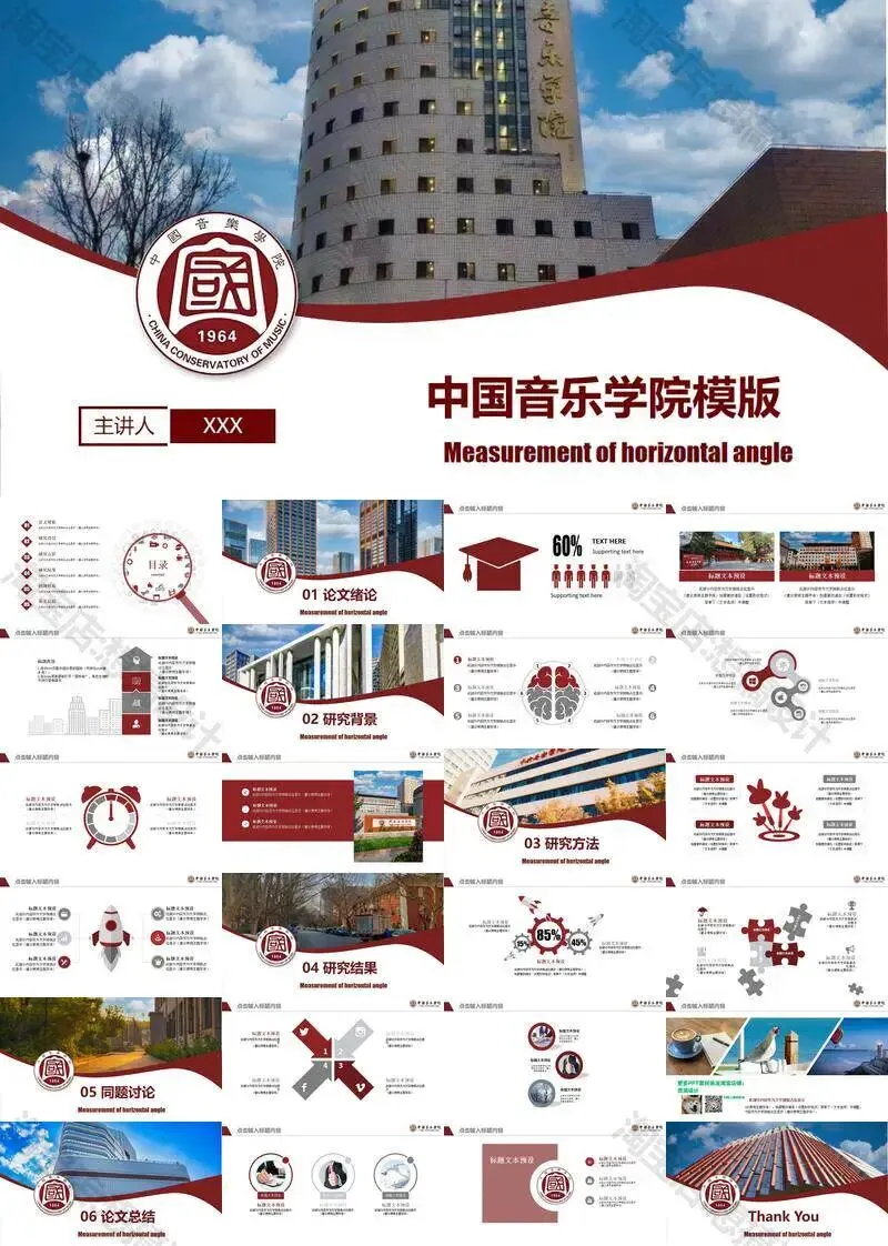 >中国音乐学院毕业答辩PPT模板汇报幻灯片课件总结大学生作品