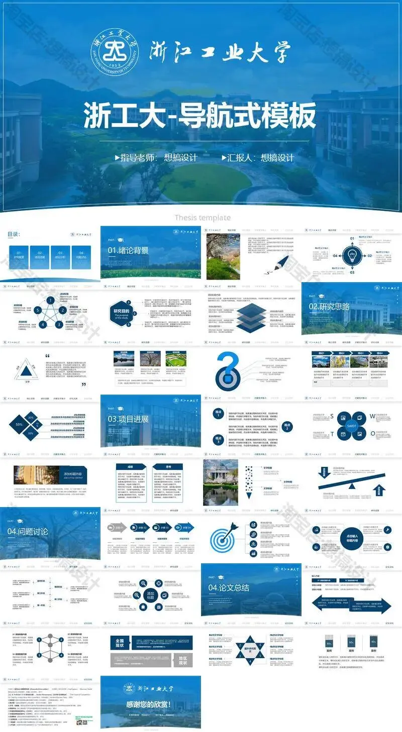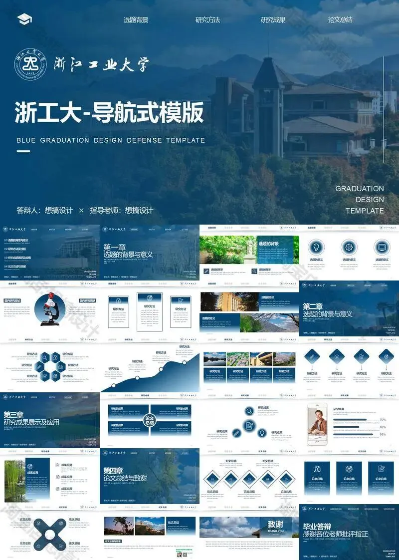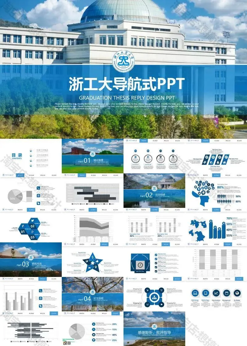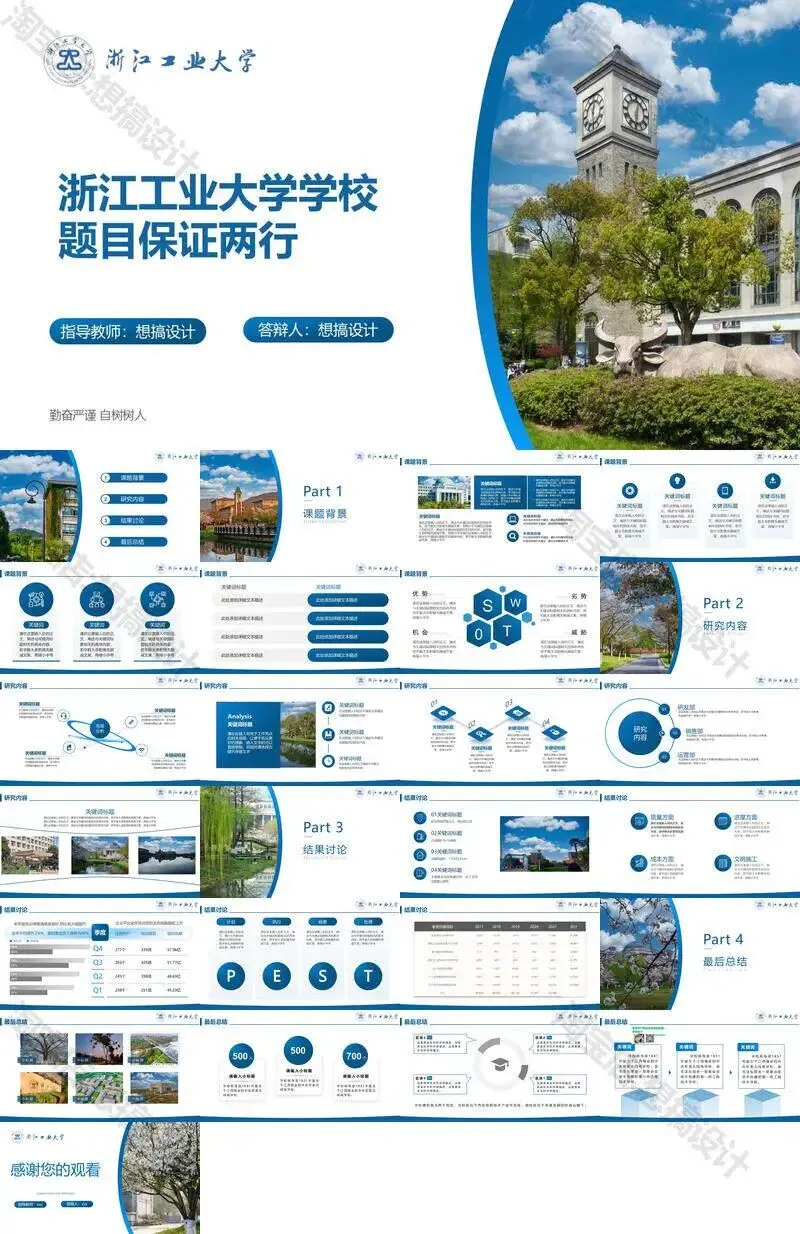 >浙江工业大学毕业答辩PPT模板汇报幻灯片课件总结大学生作品