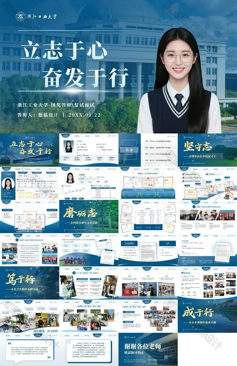 浙江工业大学毕业答辩PPT模板汇报幻灯片课件总结大学生作品