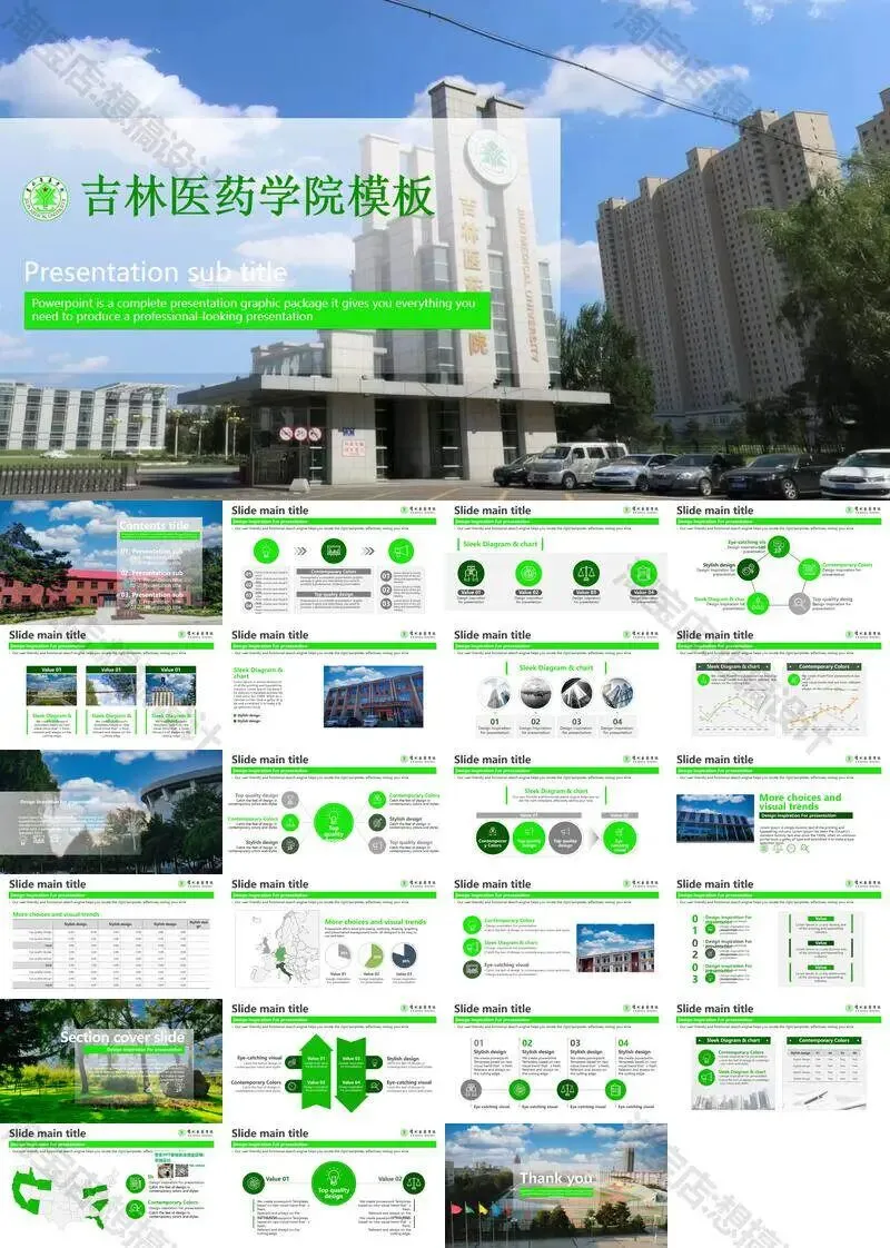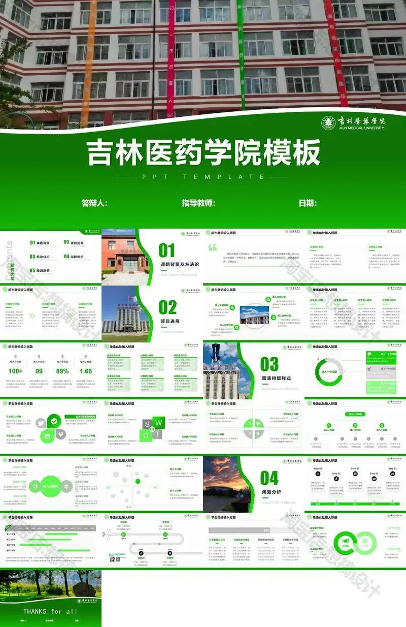 >吉林医药学院毕业答辩PPT模板汇报幻灯片课件总结大学生作品