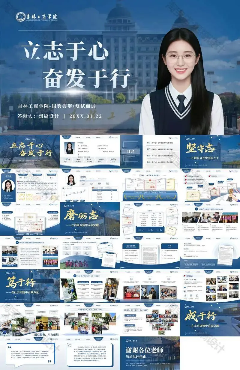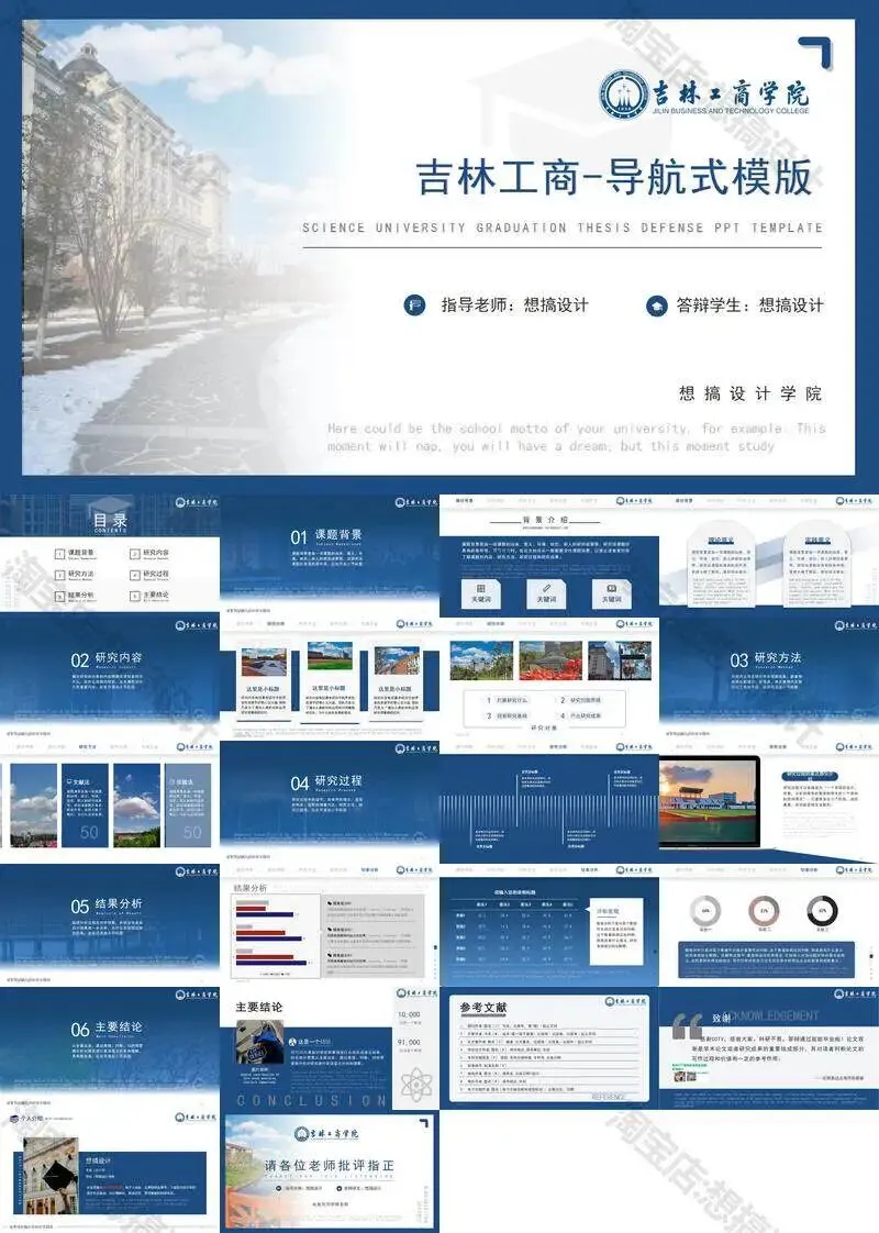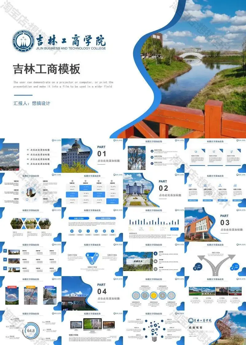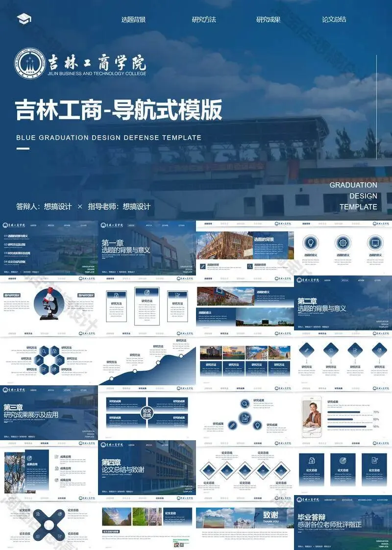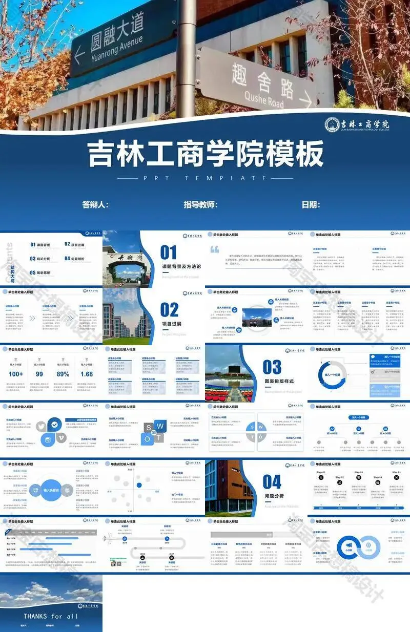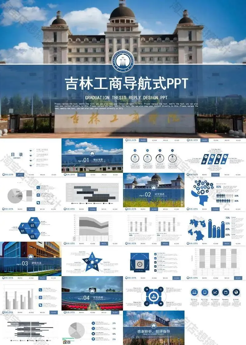 >吉林工商学院毕业答辩PPT模板汇报幻灯片课件总结大学生作品