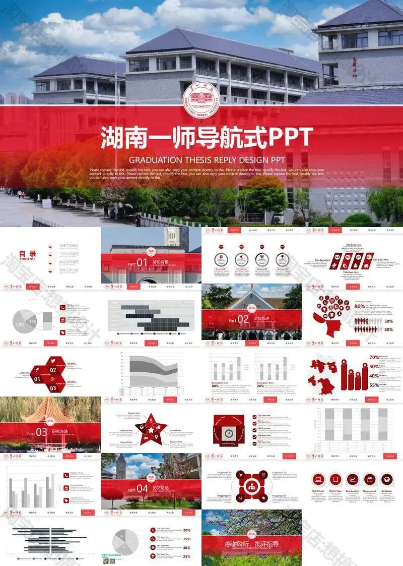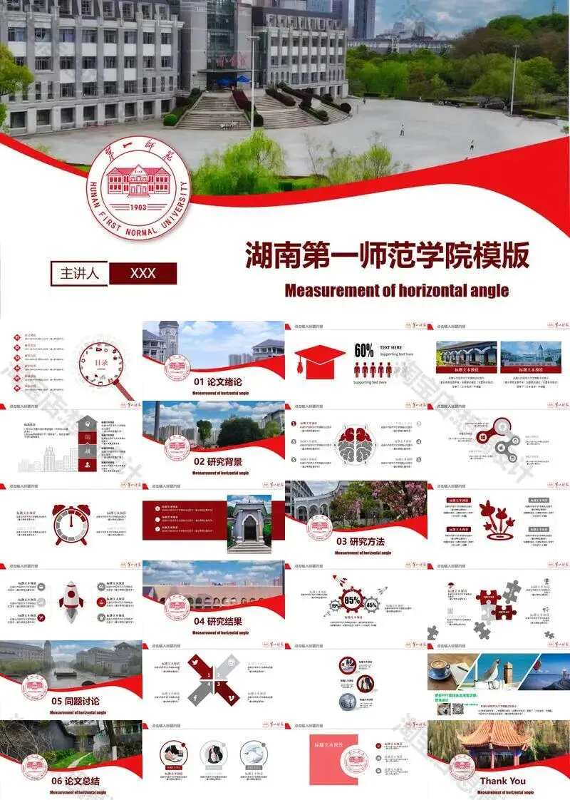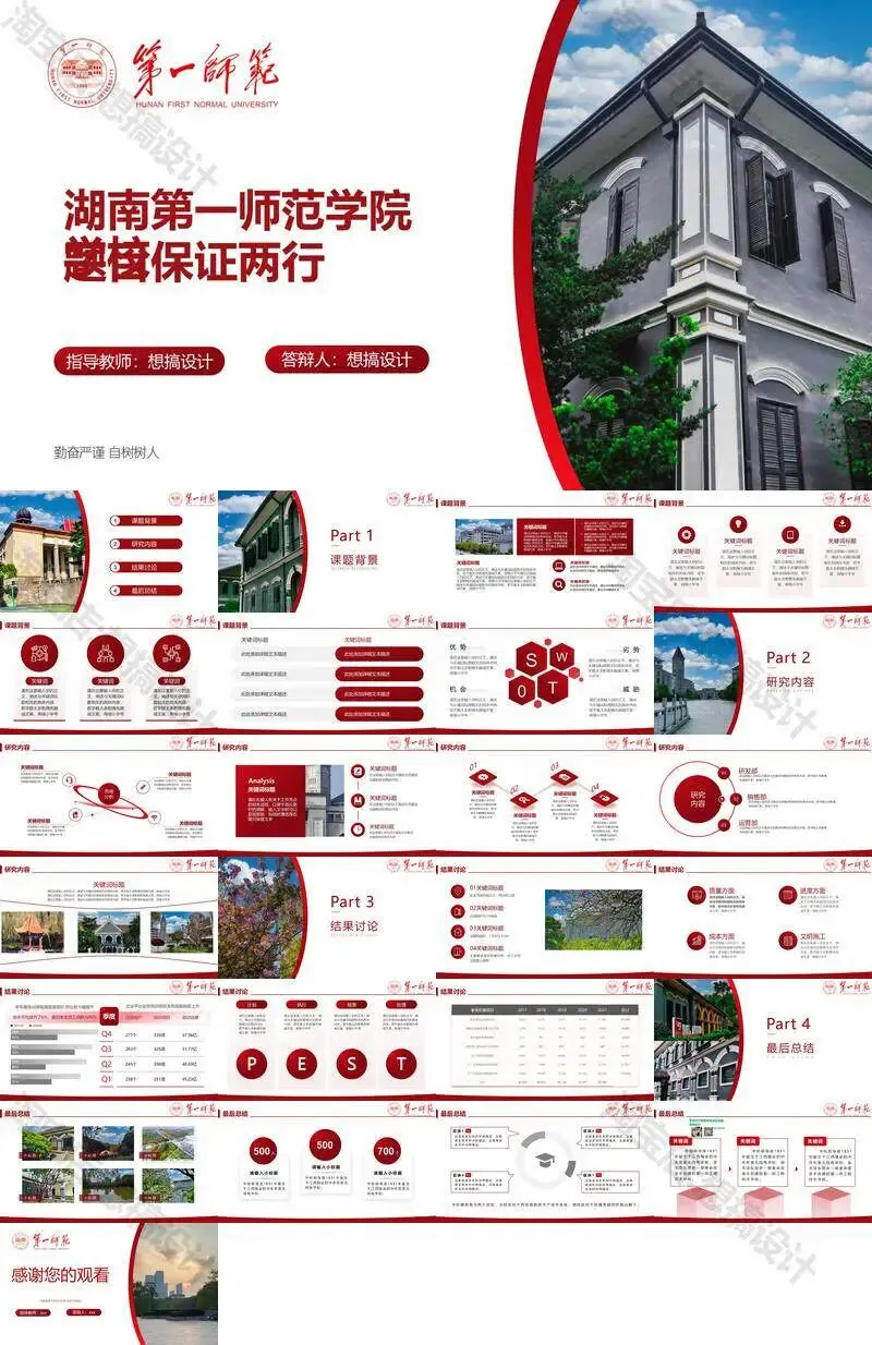 >湖南第一师范学院毕业答辩PPT模板汇报幻灯片课件总结大学生
