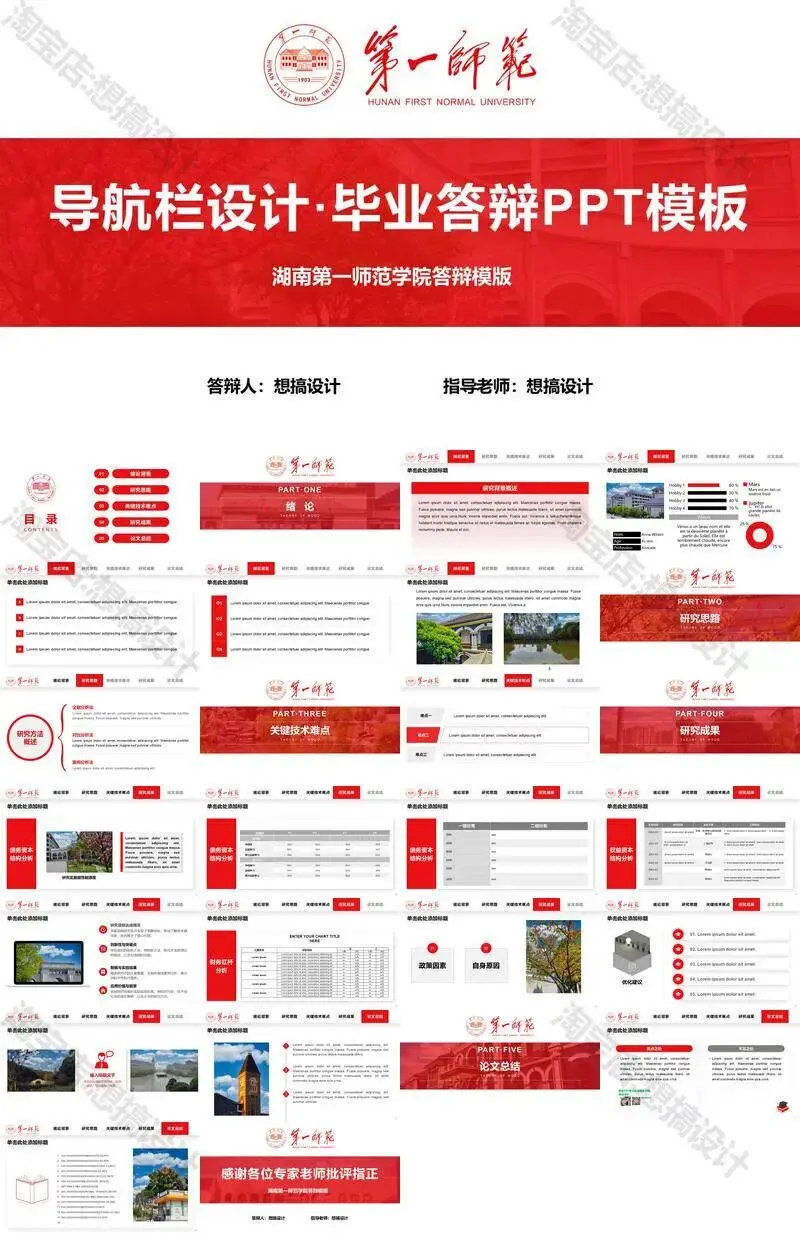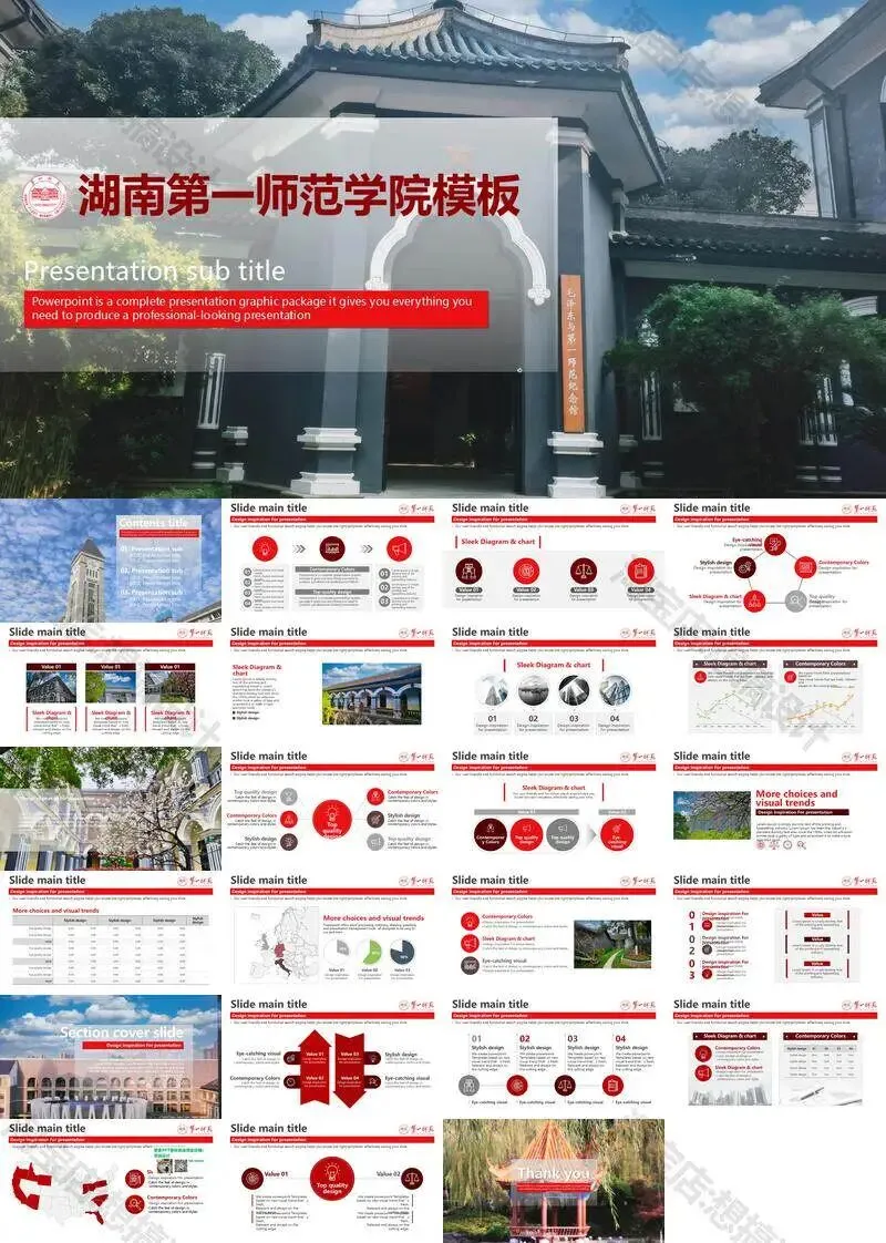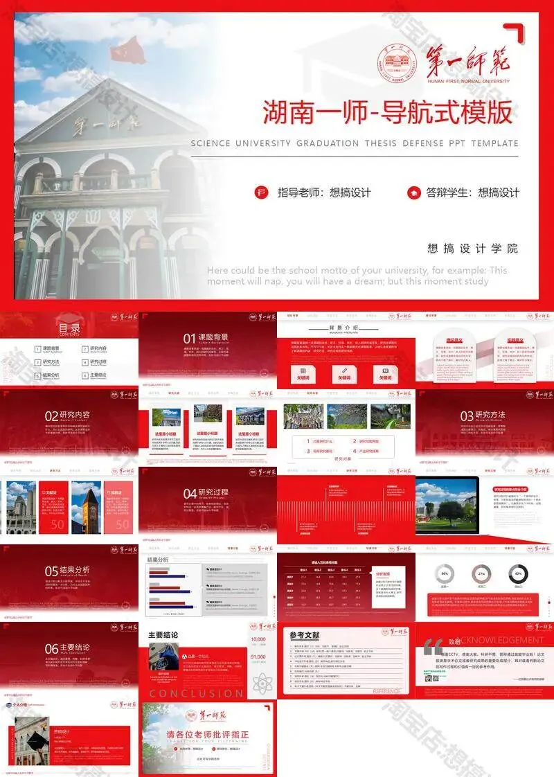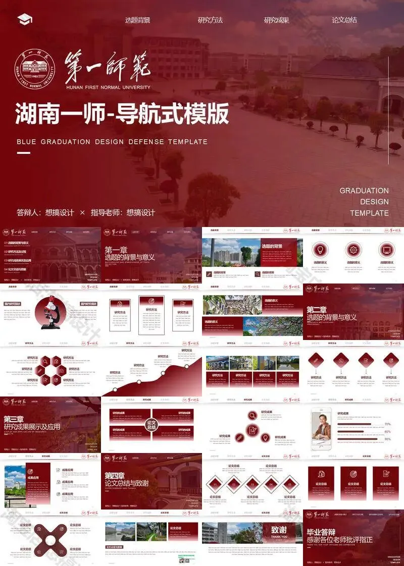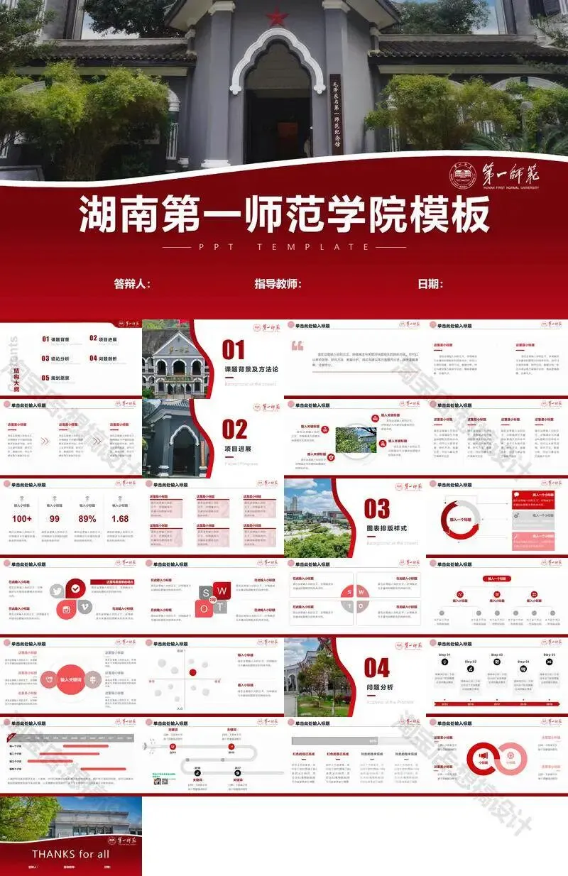 >湖南第一师范学院毕业答辩PPT模板汇报幻灯片课件总结大学生