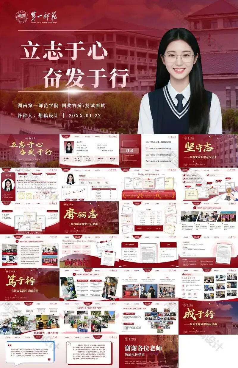 湖南第一师范学院毕业答辩PPT模板汇报幻灯片课件总结大学生