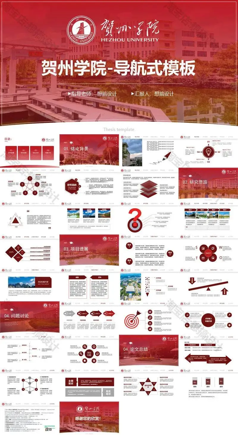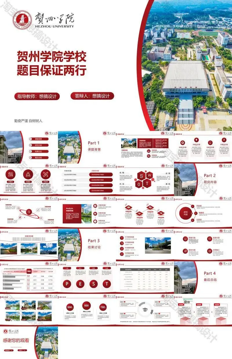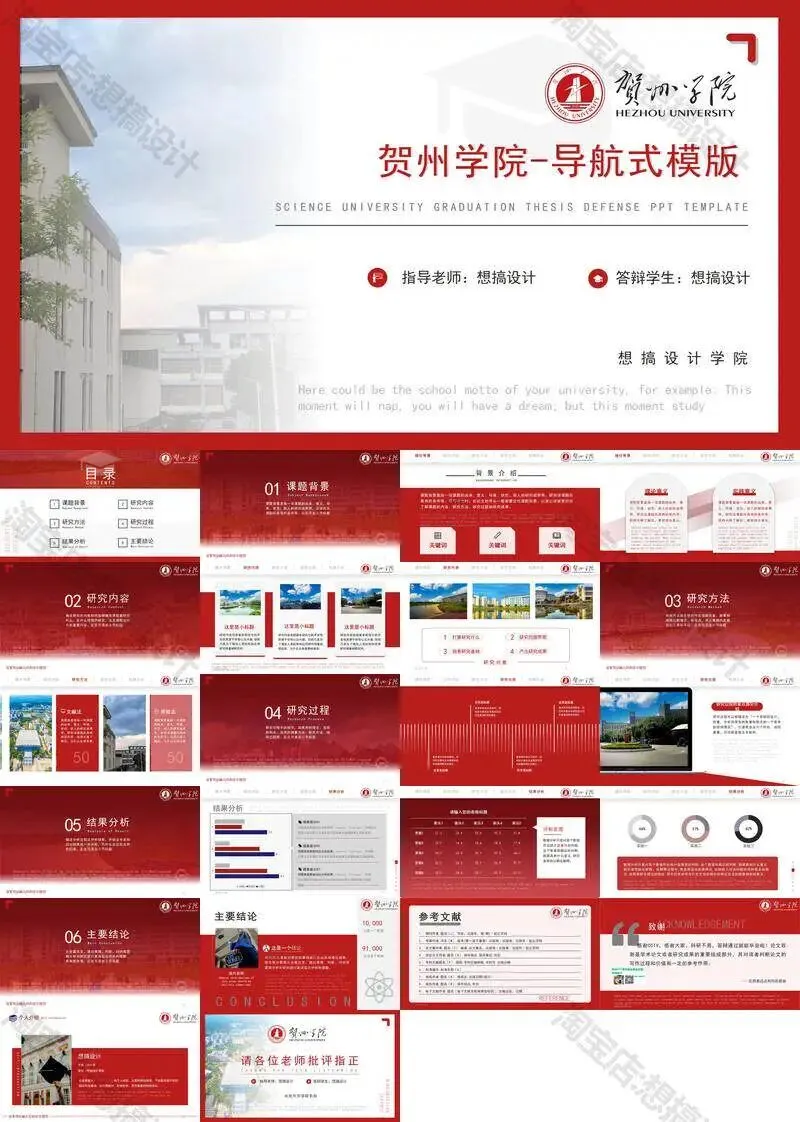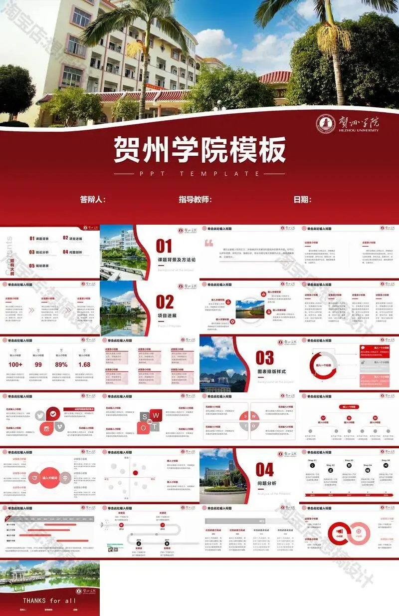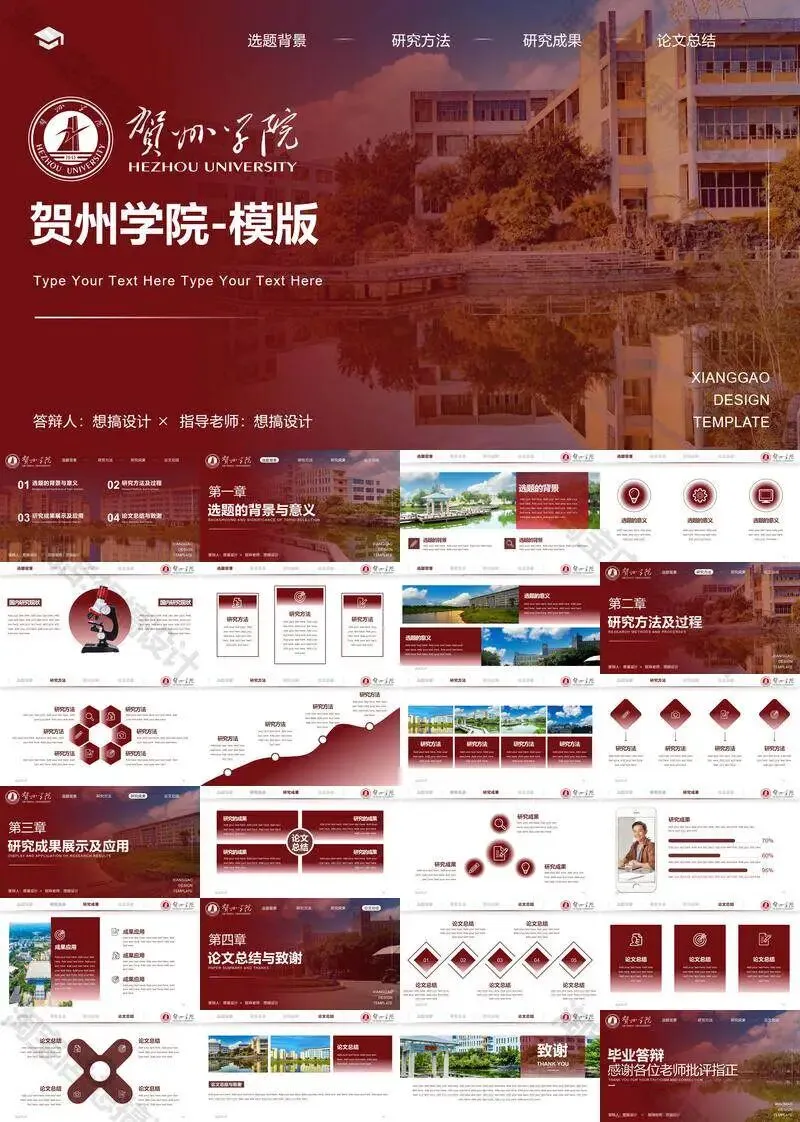>贺州学院PPT模板毕业答辩汇报课题总结