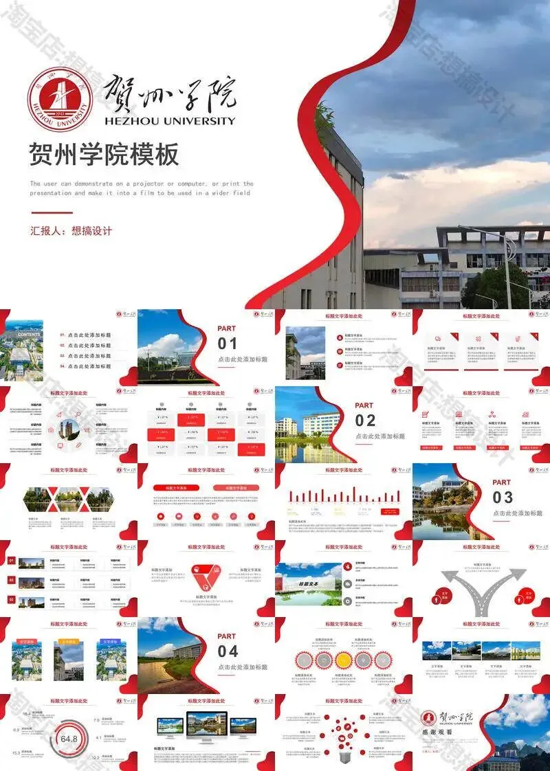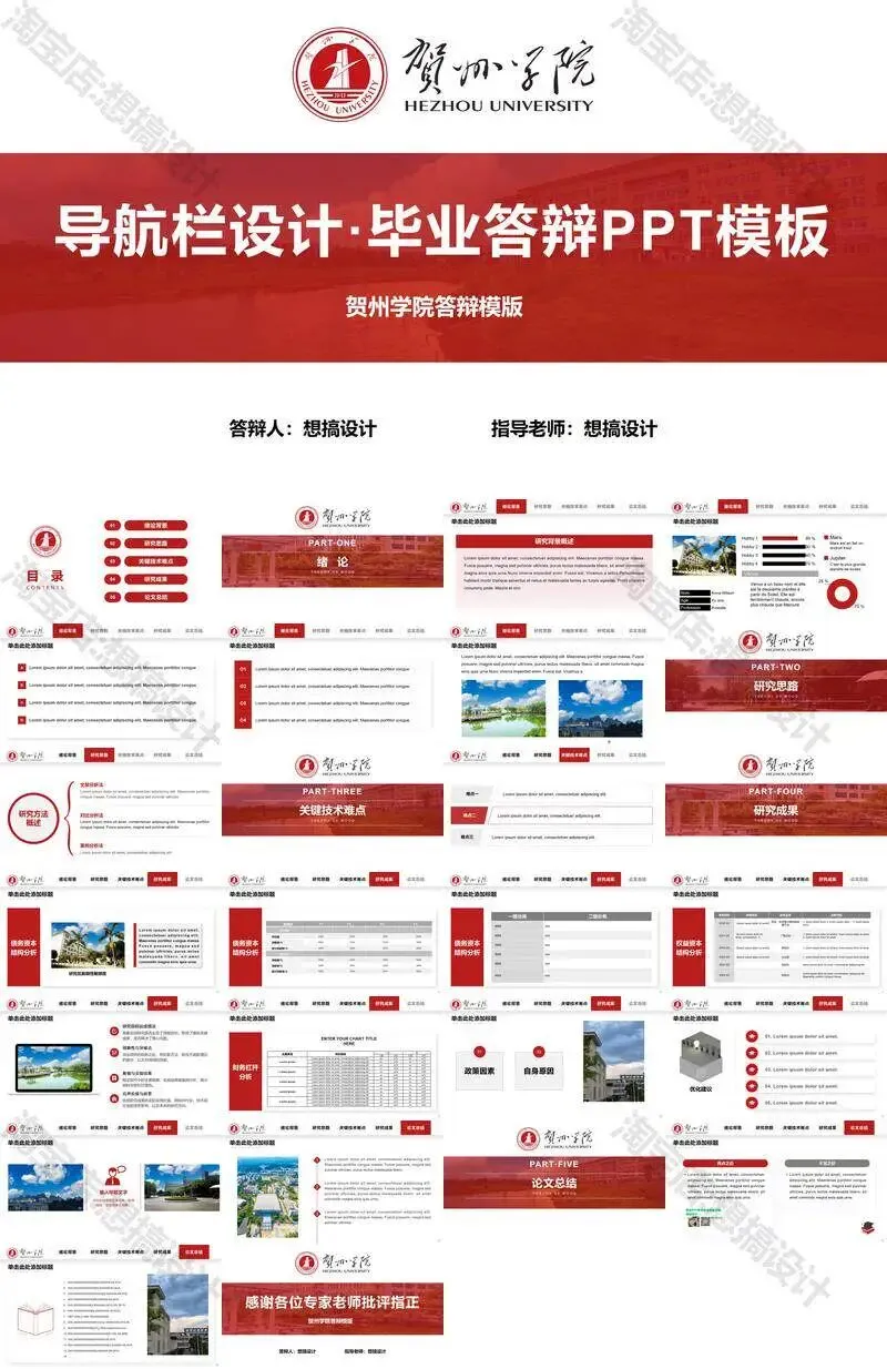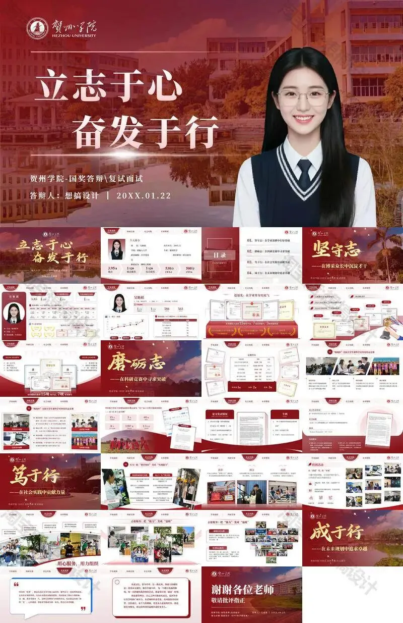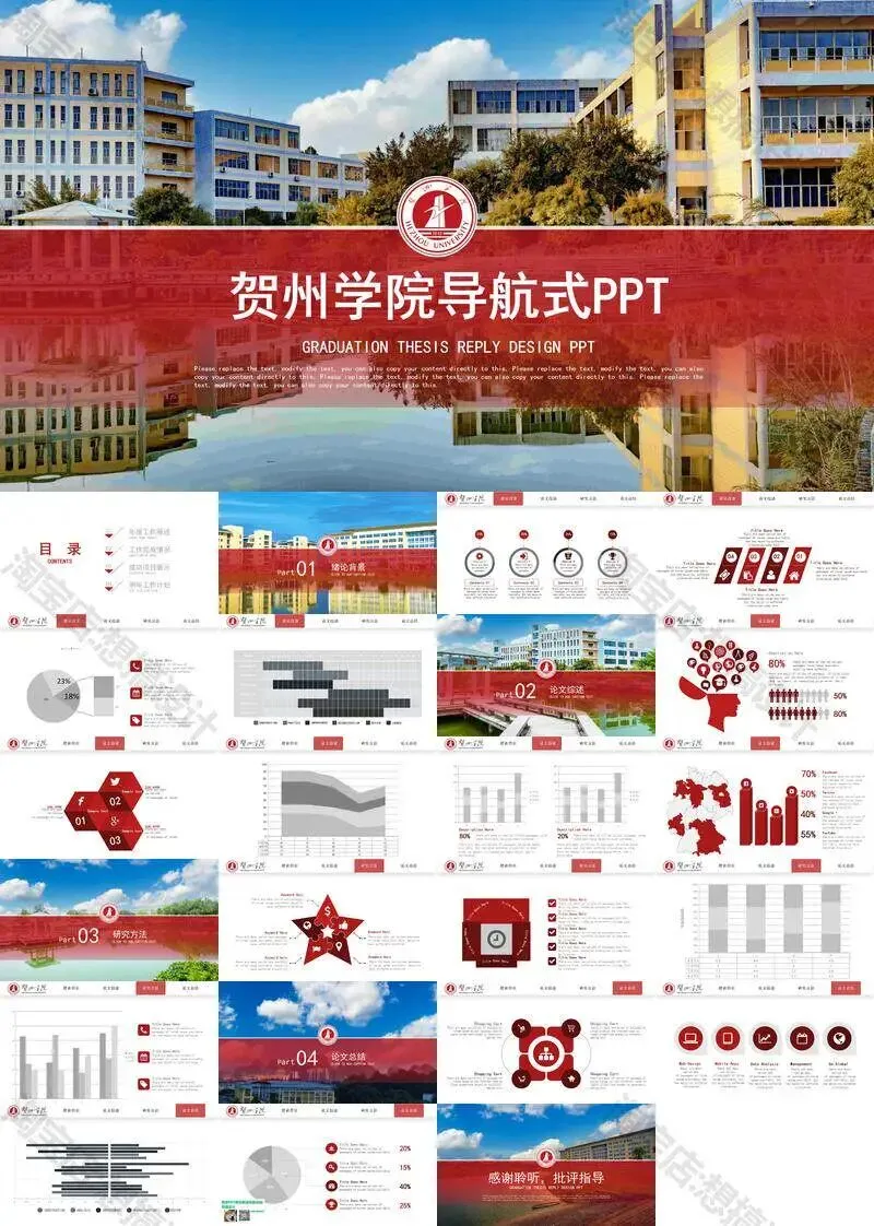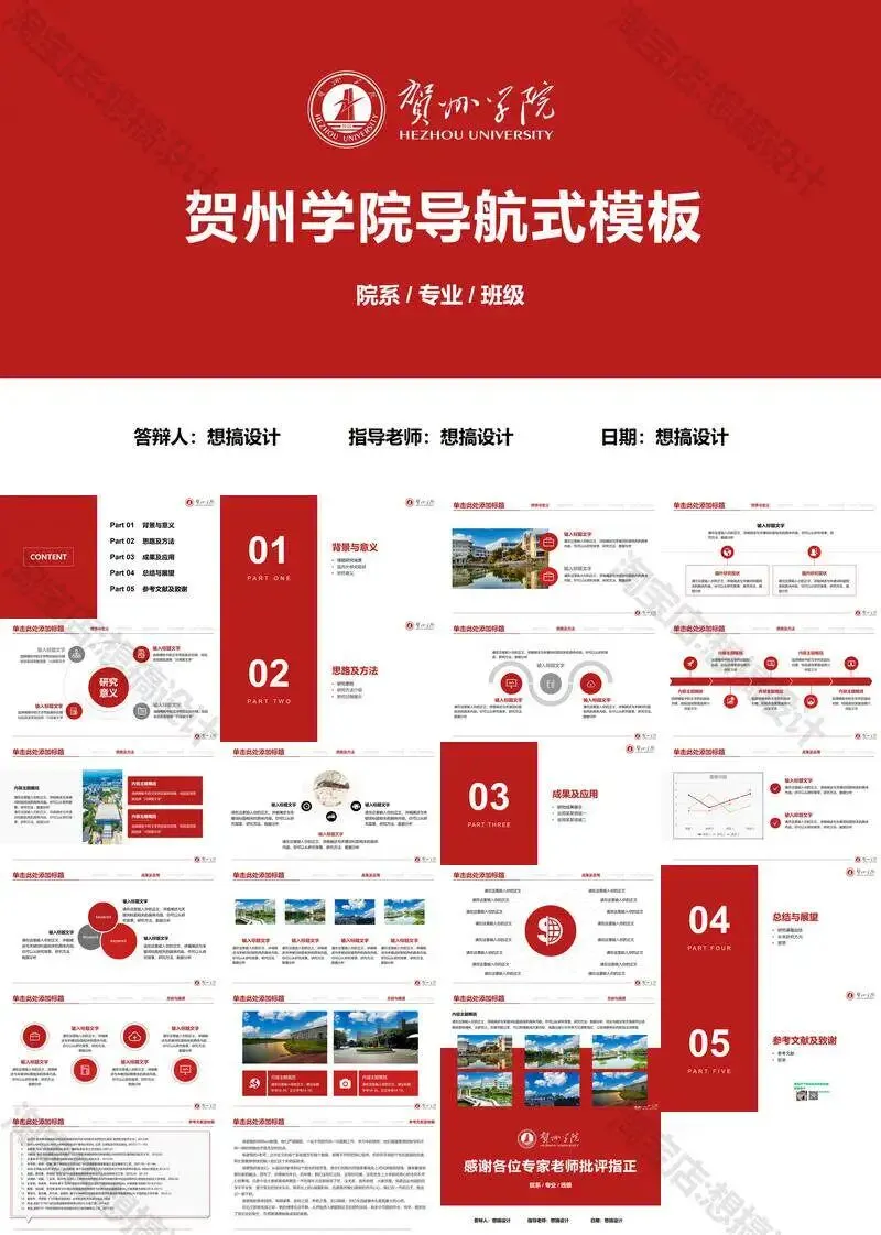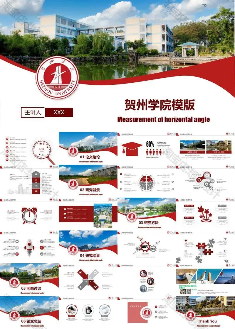 >贺州学院PPT模板毕业答辩汇报课题总结