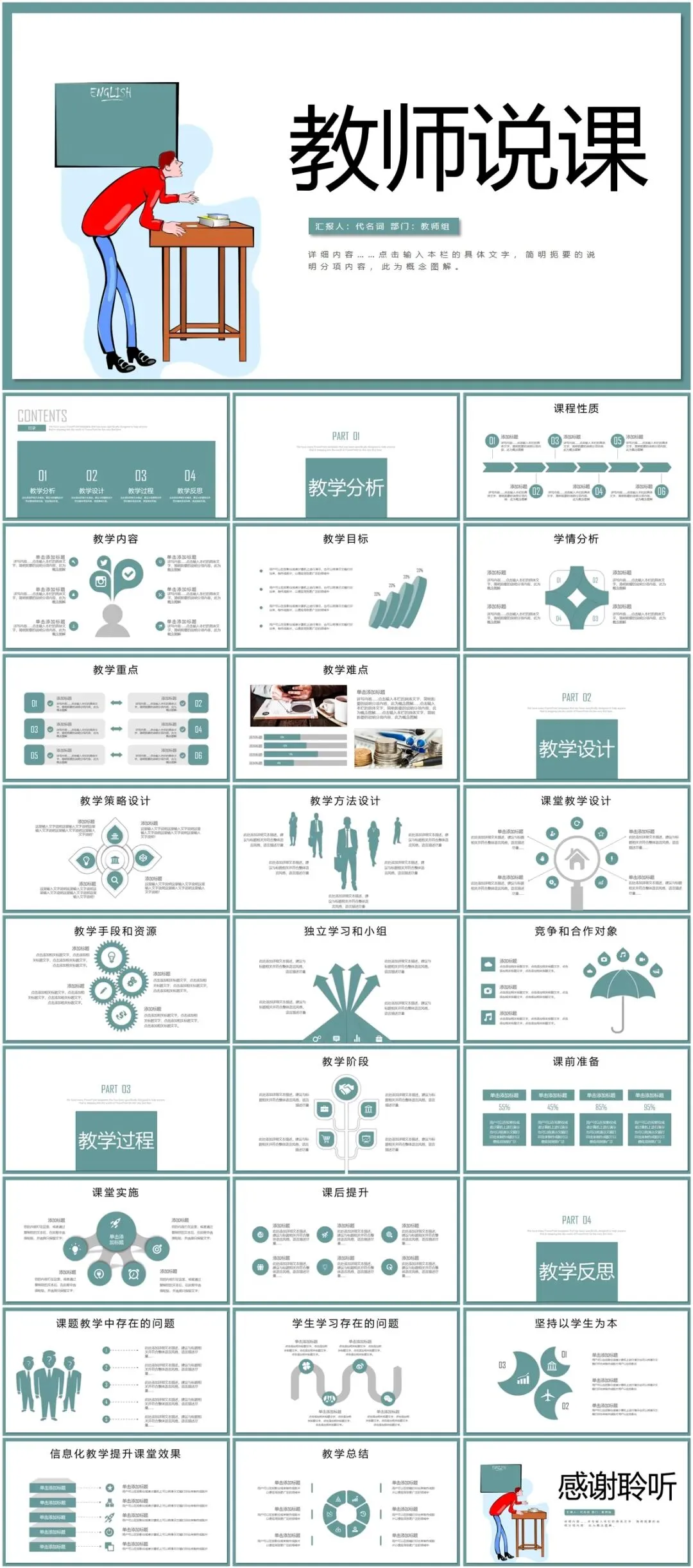 精品教师专用说课PPT模板(可下载可编辑)