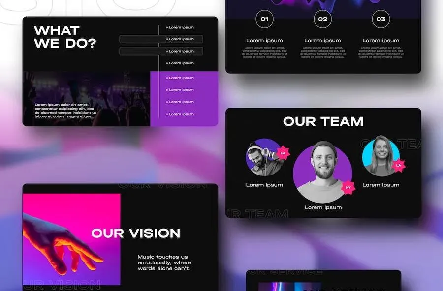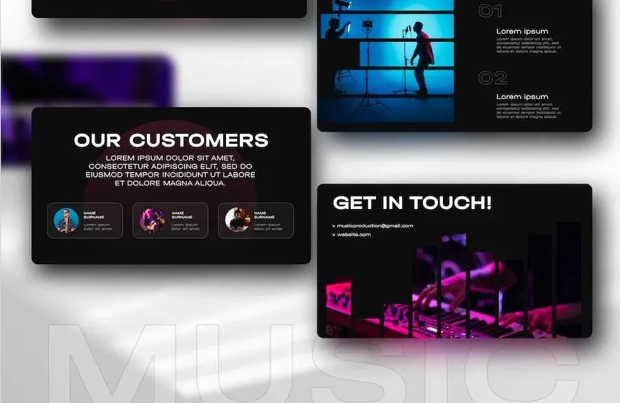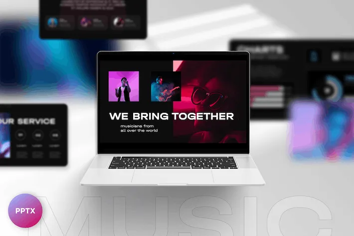 音乐制作编曲录音工作室PPT模板,本套模板由顶尖PPT提供下载,模板支持PPTX等格式,适用于制作、音乐、工作室、编曲、录音等类型的需求。模板尺寸规格为1920×1080。效果预览图中的配图仅作示意,源文件不包含。下载即可获可编辑的源文件,轻松定制,满足您的多样化需求。