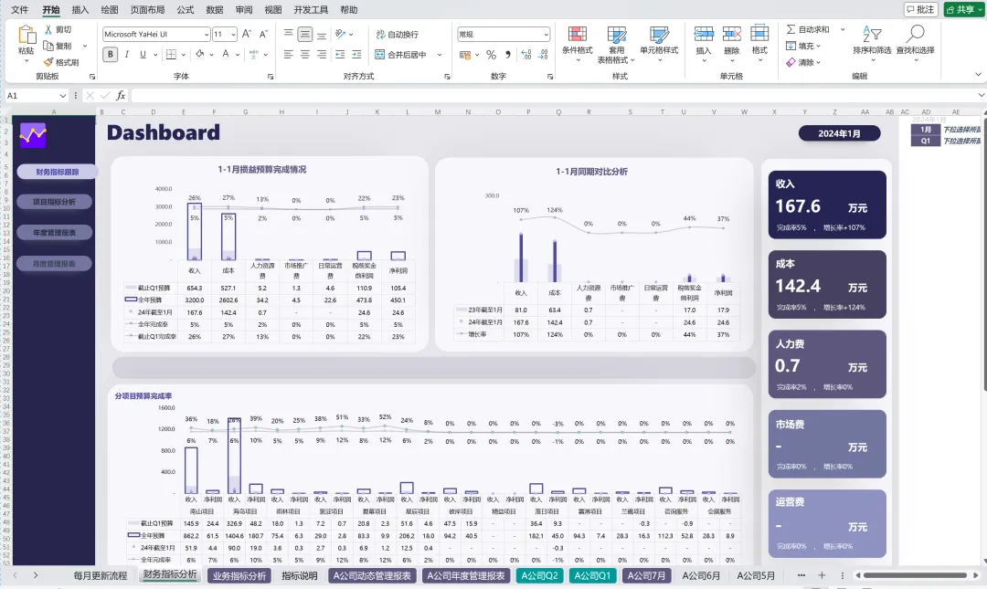 看到右上角的月份期间选择了吗? 这套看板就是每月导出《科目辅助余额表》复制粘贴自动生成的。