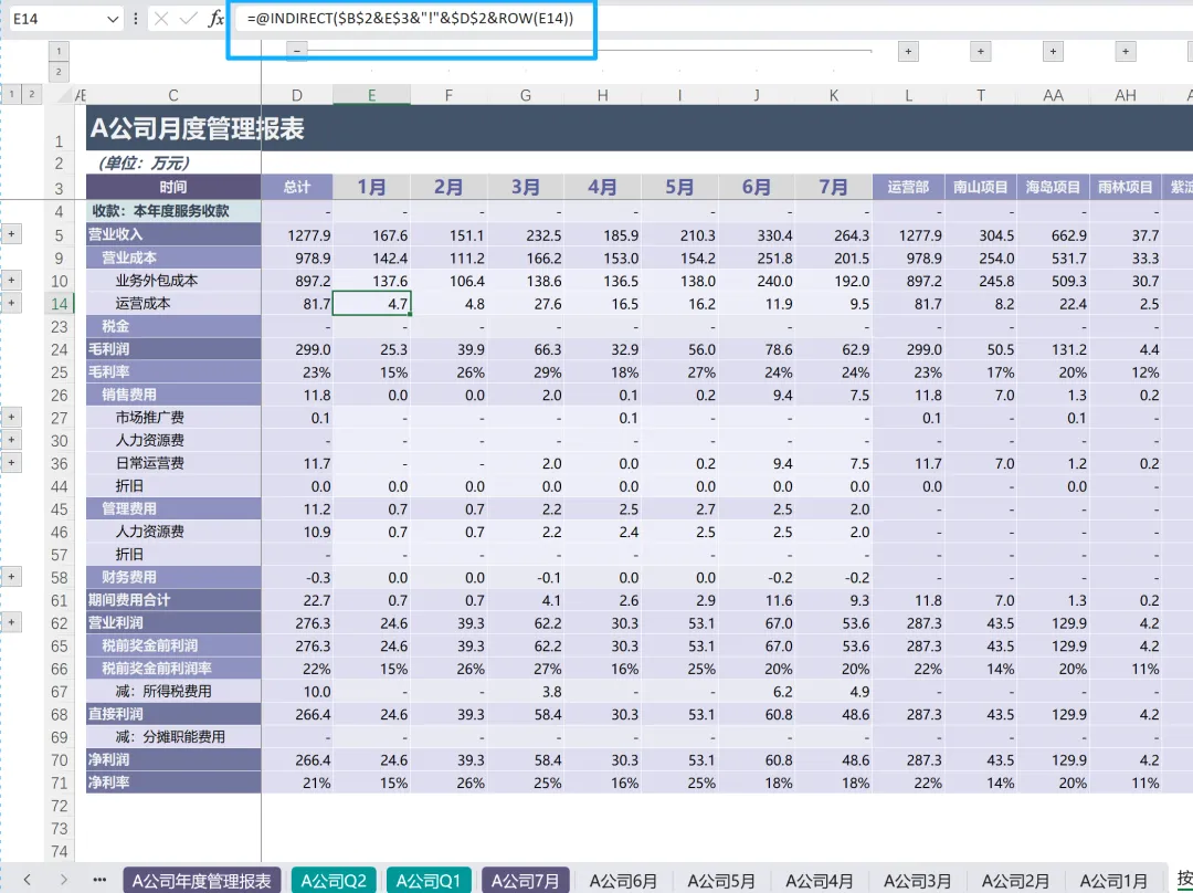 INDIRECT应用:如果你的源数据Sheet名称会随月份变化(虽然不建议这样做),可以使用INDIRECT函数动态引用Sheet名称。