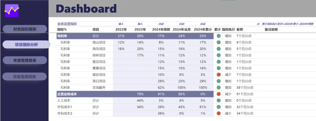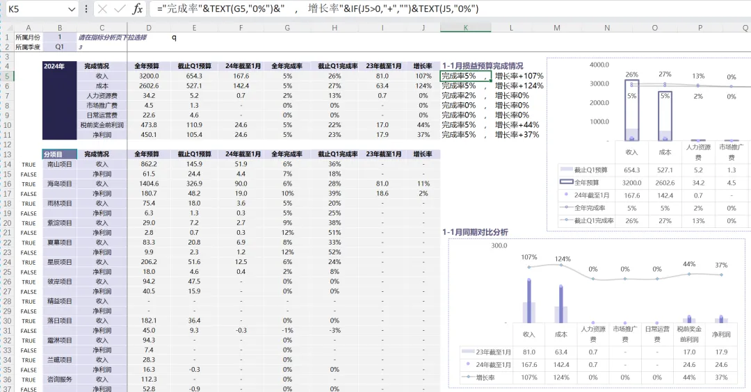 差异率:(本期实际 - 预算) / 预算。注意设置IFERROR函数,避免分母为0时显示错误代码。