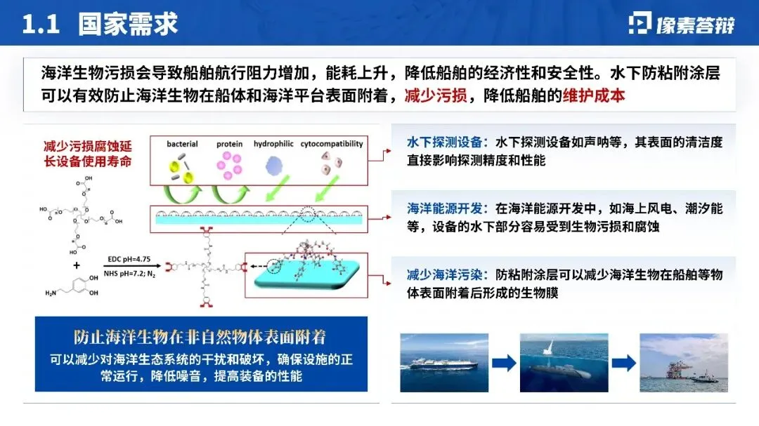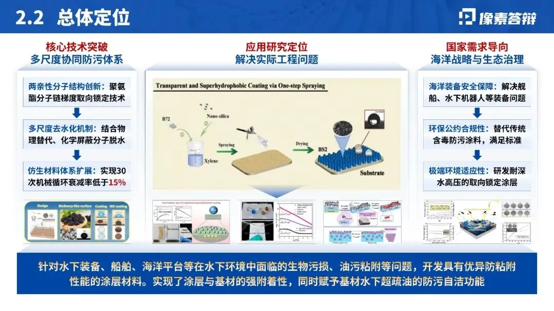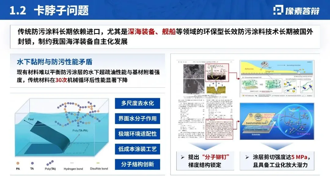 内容聚焦刚需 紧密围绕海洋装备防污 “卡脖子” 问题展开,突出国家需求与技术突破,用数据与成果强化说服力,贴合评审对科研价值的评判标准。