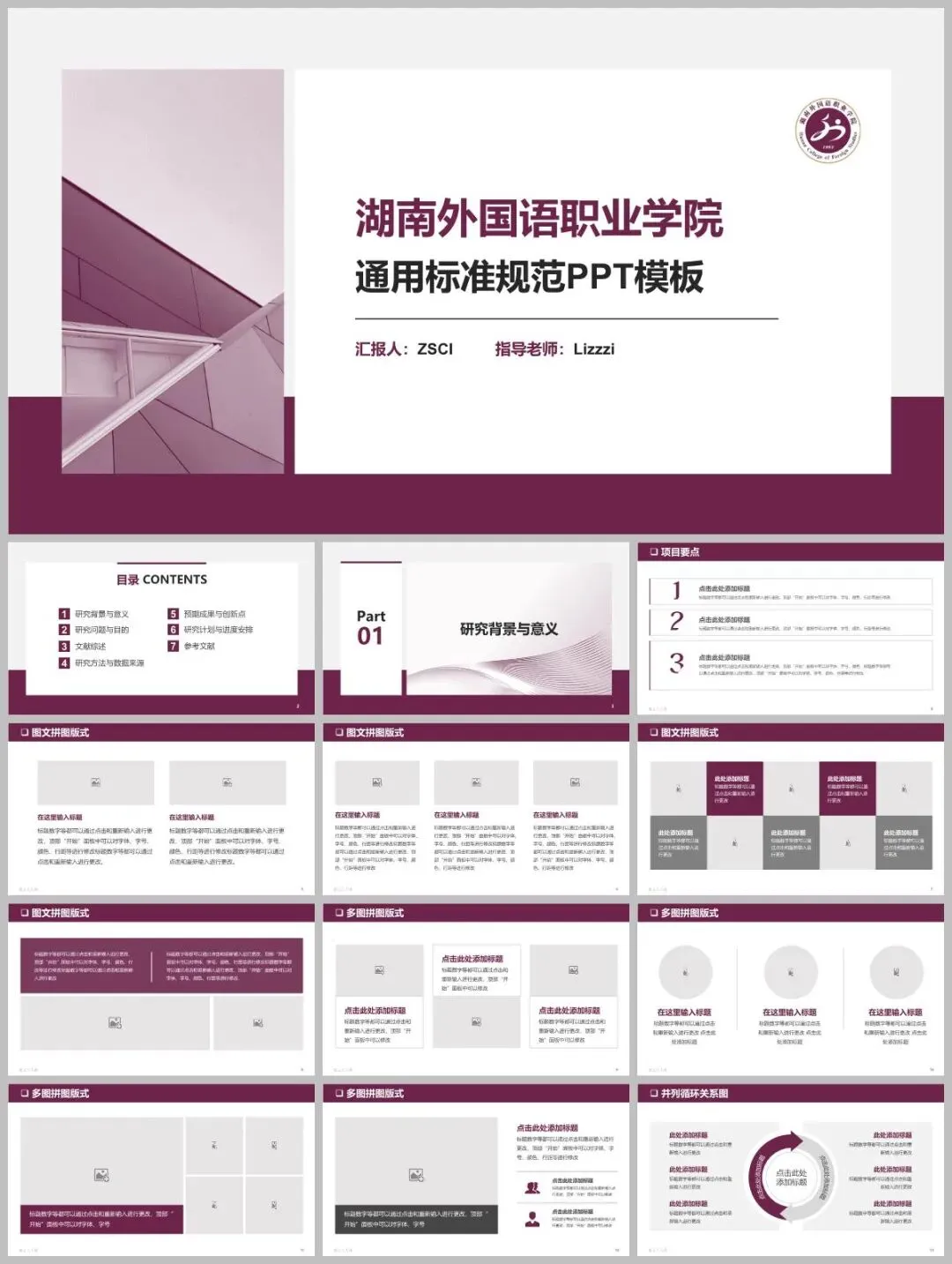 当前位置:首页>PPT模板>湖南外国语职业学院专属PPT模板