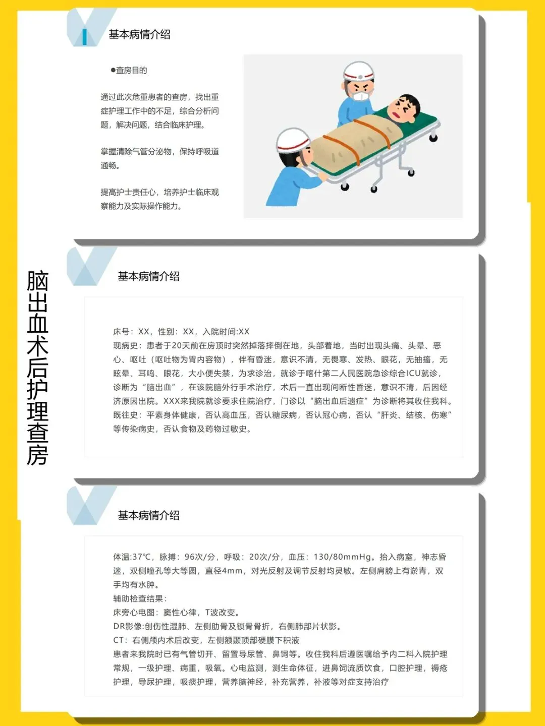 大家好!今天我们开展脑出血术后合并气管切开患者护理查房,旨在规范危重护理流程,提升气道管理与并发症防控能力。